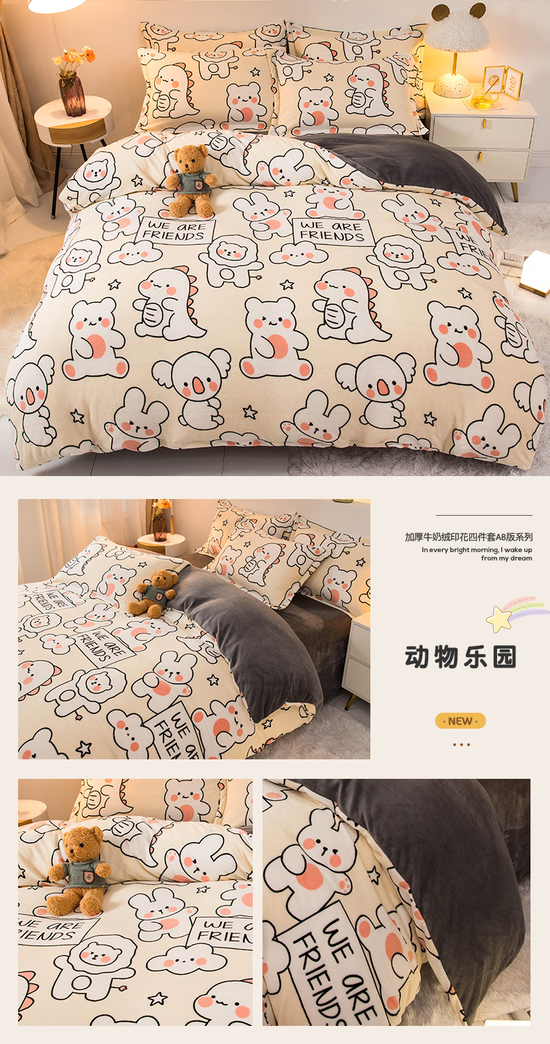 当前位置: 91家纺网 > 商品网购 > 床品套件 > 四件套 > 牛奶绒四件套 > 宅部落 2025新款高克重牛奶绒四件套法莱绒三件套单被套 绿丛