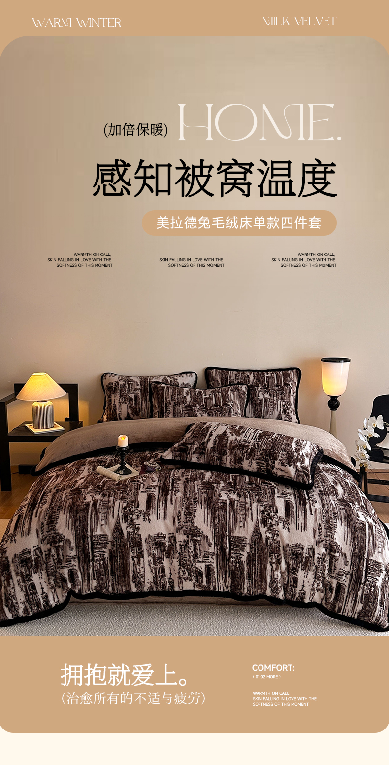 当前位置: 91家纺网 > 商品网购 > 床品套件 > 四件套 > 兔毛绒四件套 > 梵克保罗 2025秋冬新款加厚8斤包边款美拉德仿兔毛皮草牛奶绒四件套 美拉德包边款-暮光