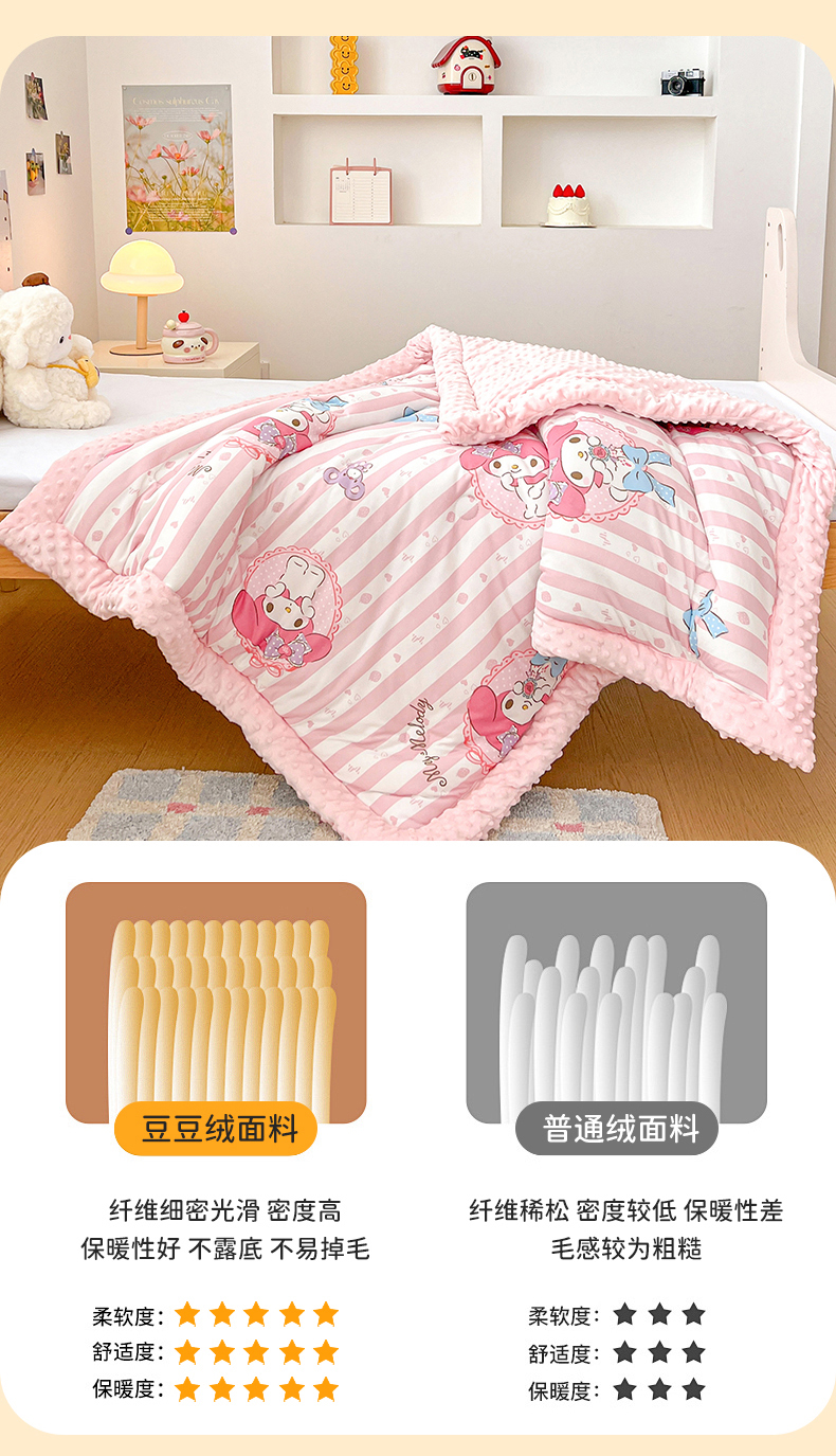 • 91家纺网 家纺一手货源 找家纺 名兮家居 2025新款经典奥特曼三丽鸥豆豆被被子被芯 竖条美乐蒂