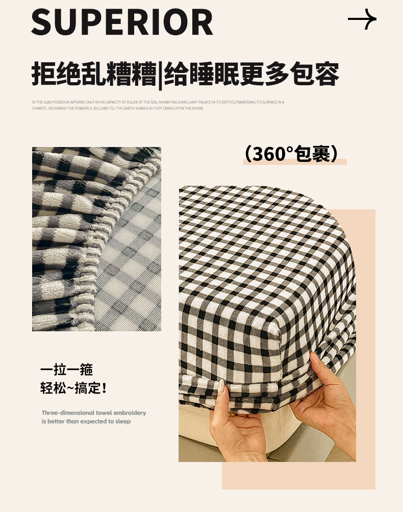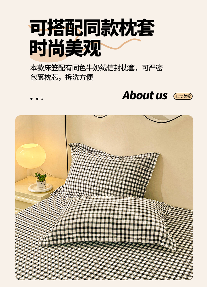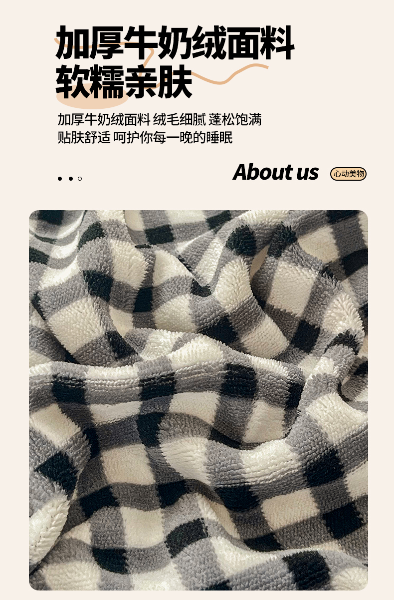 • 91家纺网 家纺一手货源 找家纺 恬澳家纺 2025新款200g高克重牛奶绒床笠单品床笠单件单床笠 暖阳-黑白格