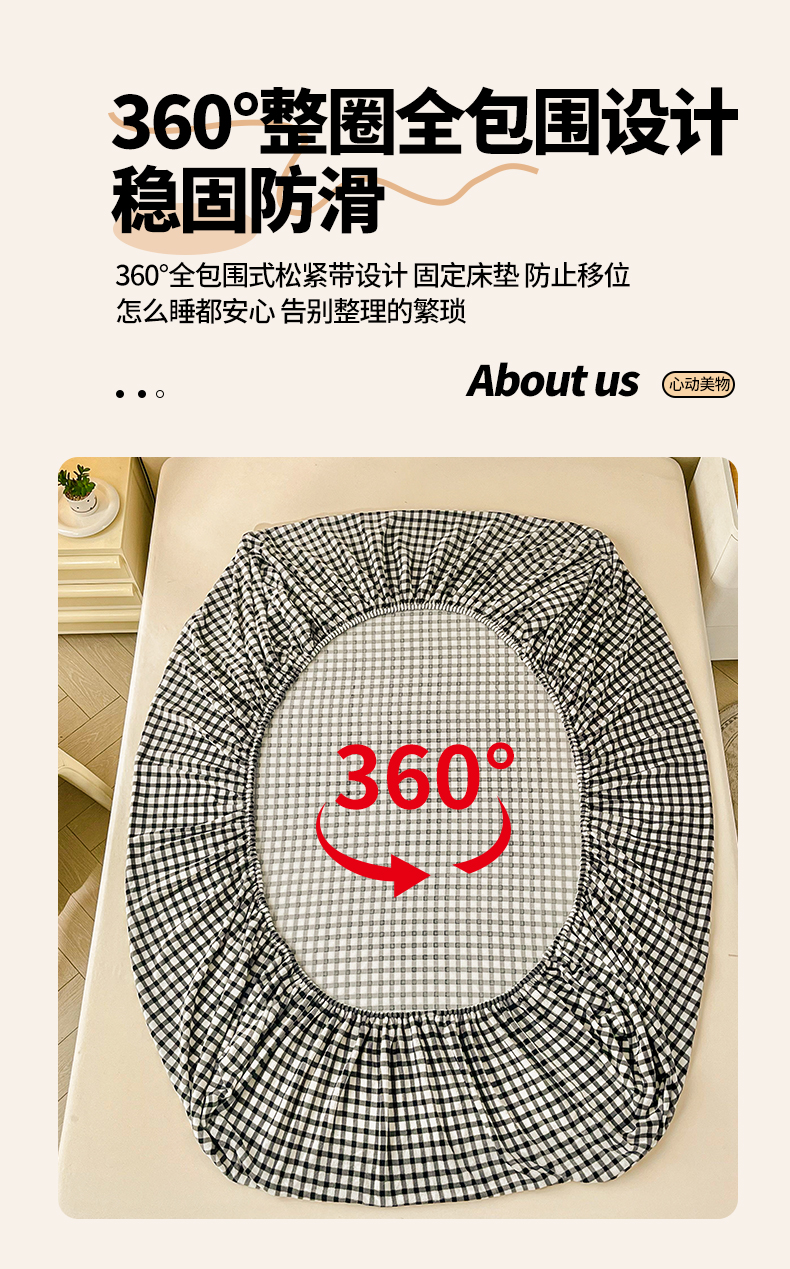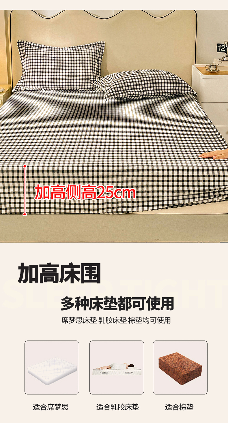 恬澳家纺 2025新款200g高克重牛奶绒床笠单品床笠单件单床笠 暖阳-黑白格