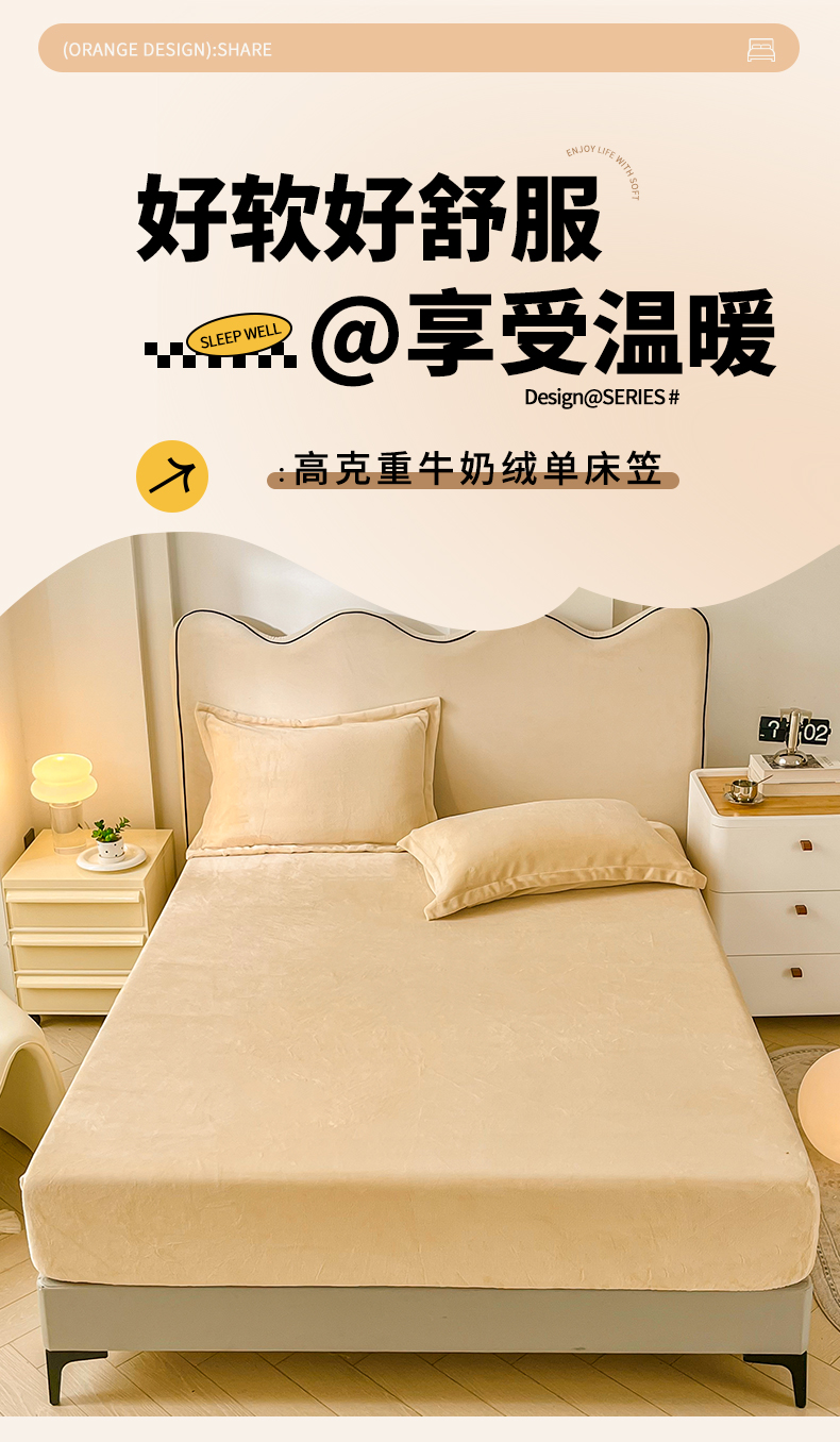 • 91家纺网 家纺一手货源 找家纺 恬澳家纺 2025新款200g高克重牛奶绒床笠单品床笠单件单床笠 暖阳-香槟