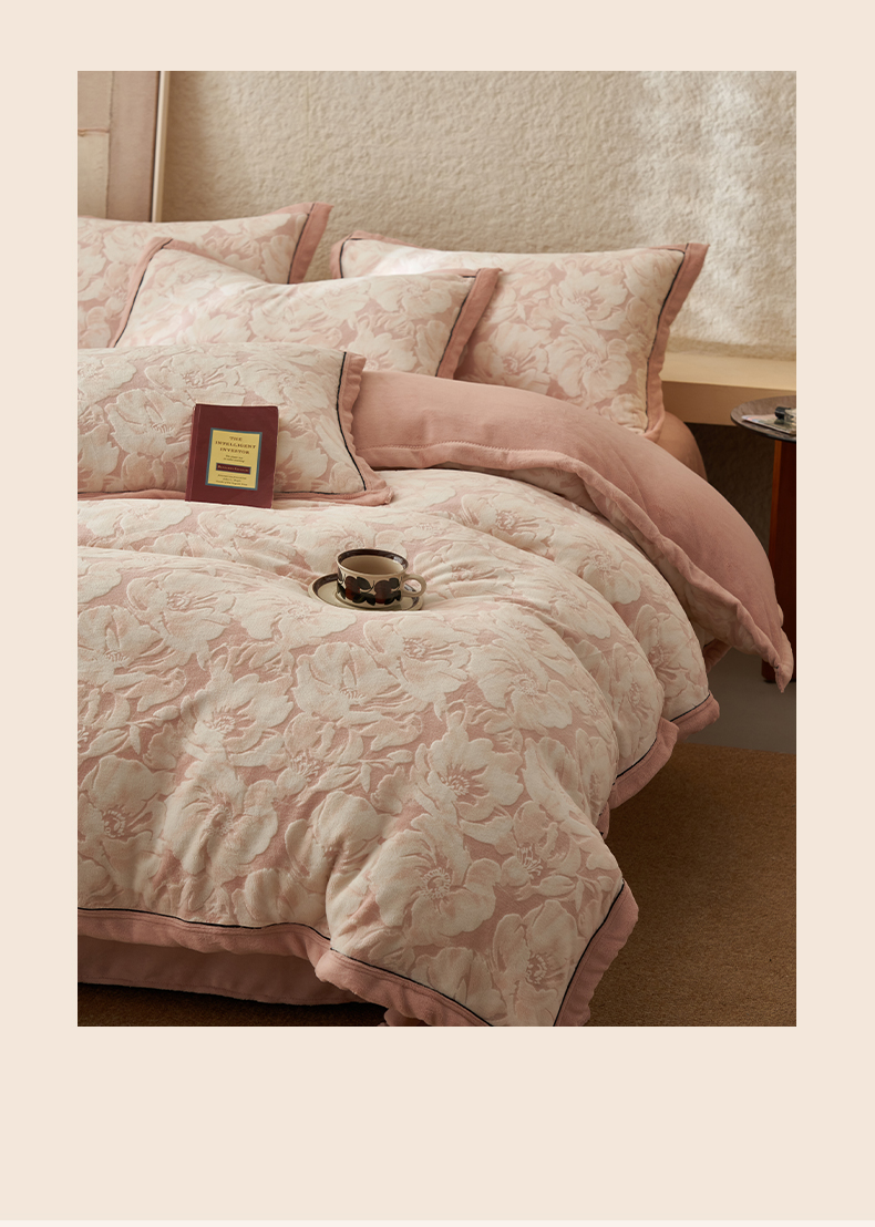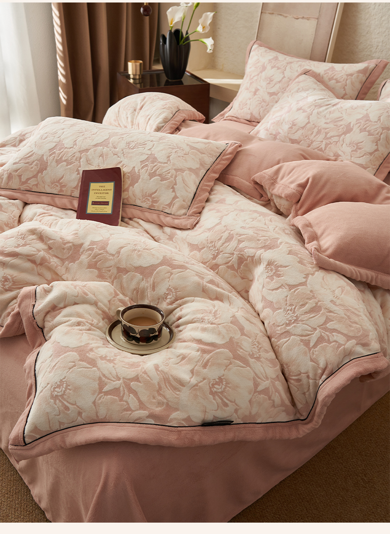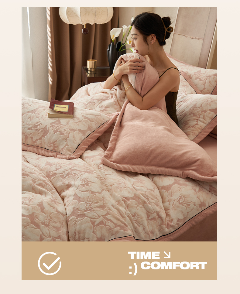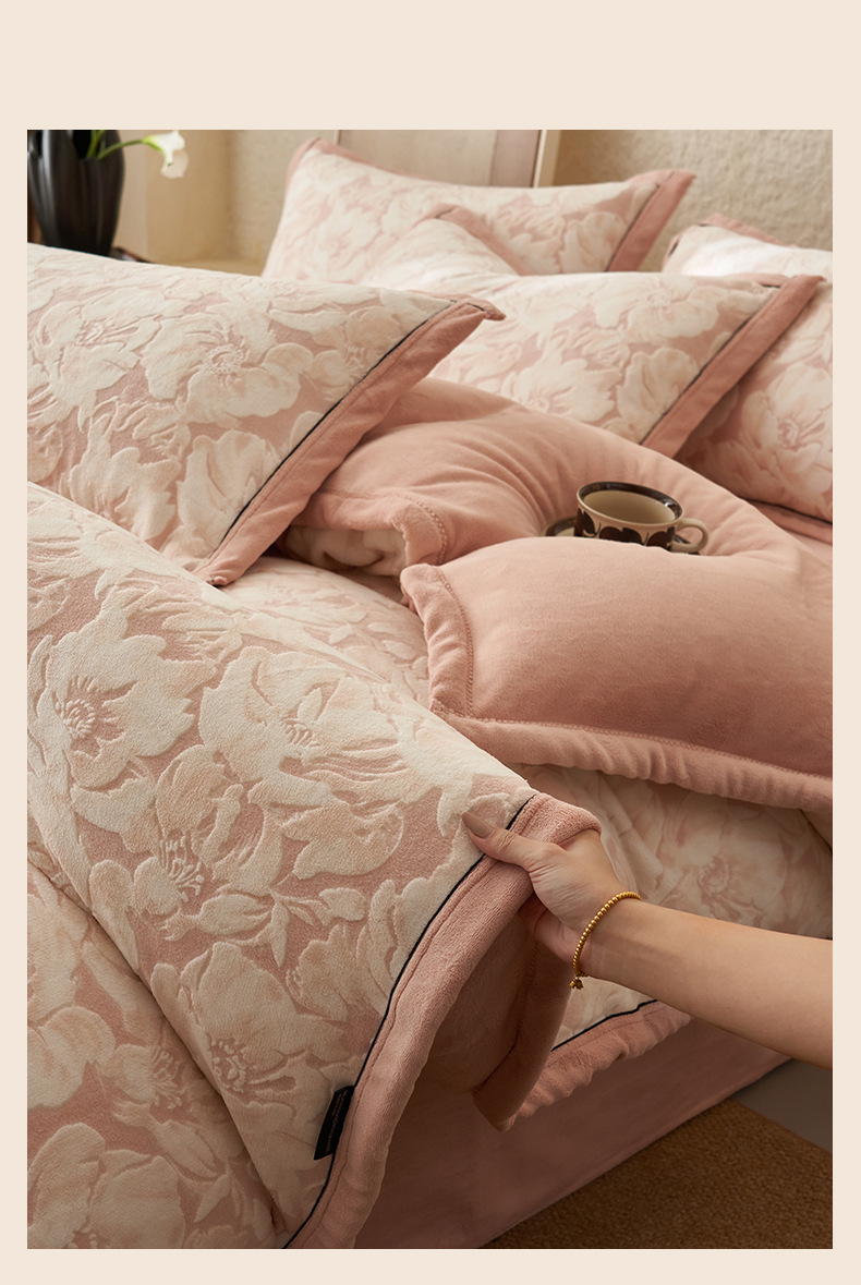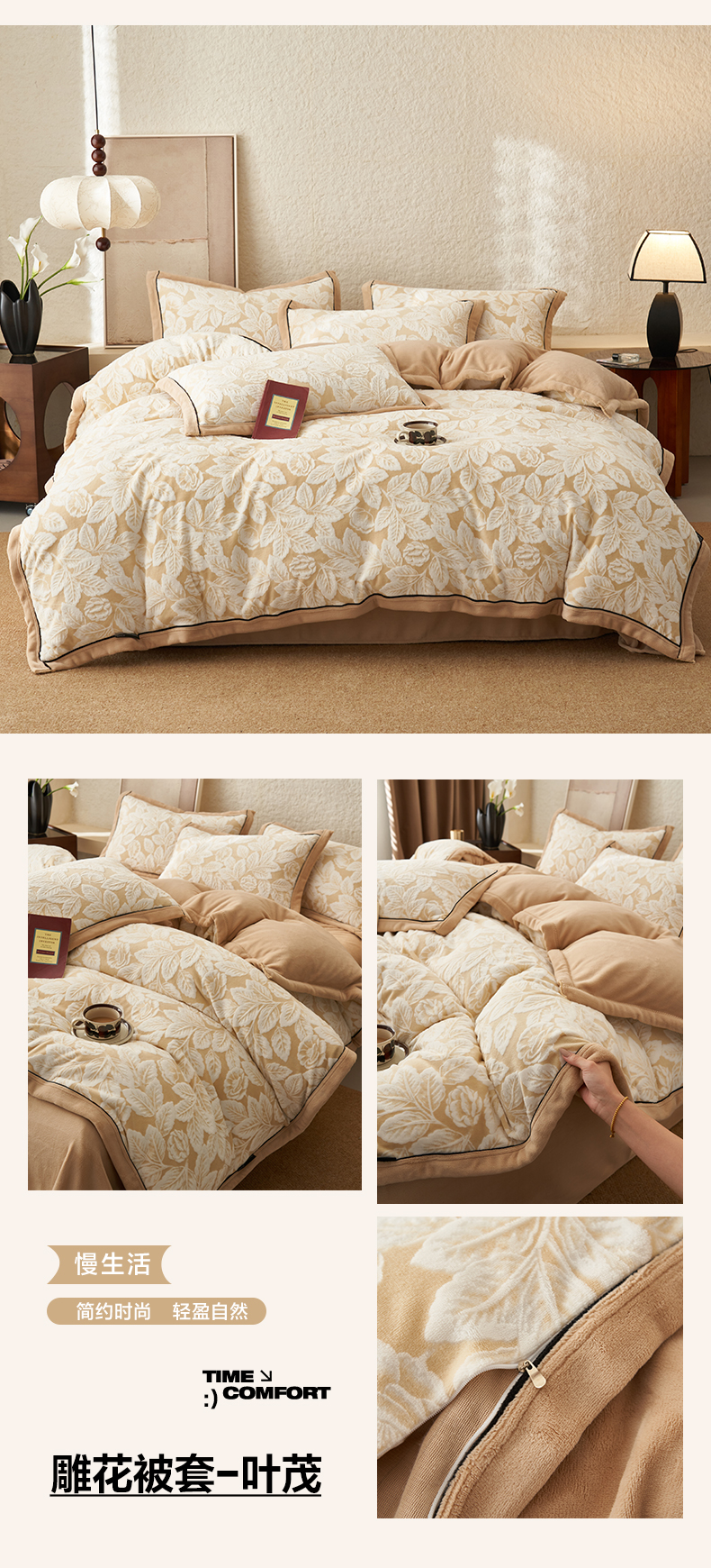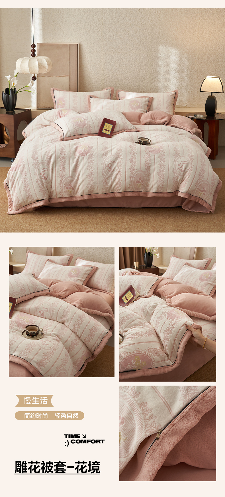 • 91家纺网 家纺一手货源 找家纺 寐绸家纺 2025新款牛奶绒染色雕花单被套 雕花被套-绽放