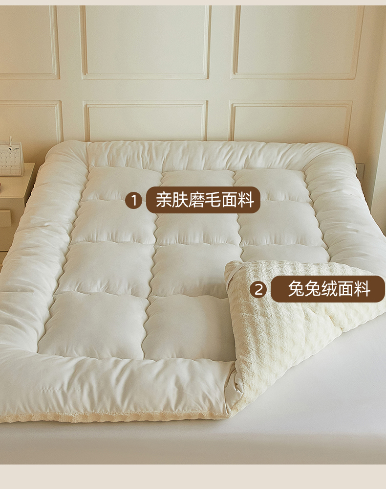 柒尚 2025新款A类兔兔绒亲肤磨毛羽丝棉垫 梦幻-奶咖色,梦幻-奶咖色