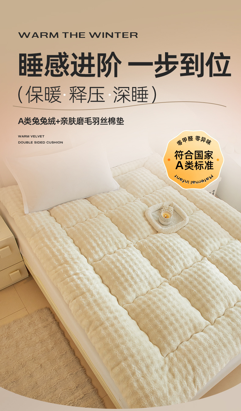 柒尚 2025新款A类兔兔绒亲肤磨毛羽丝棉垫 卡其,卡其