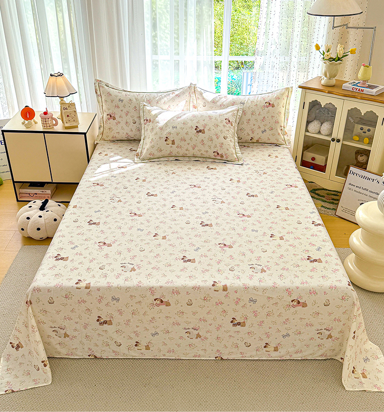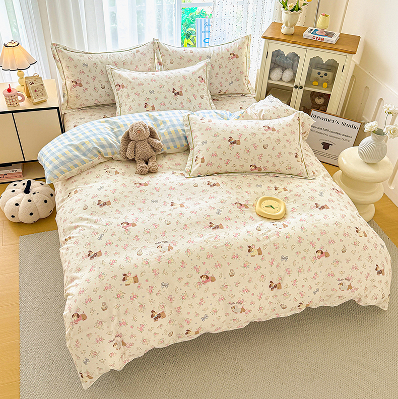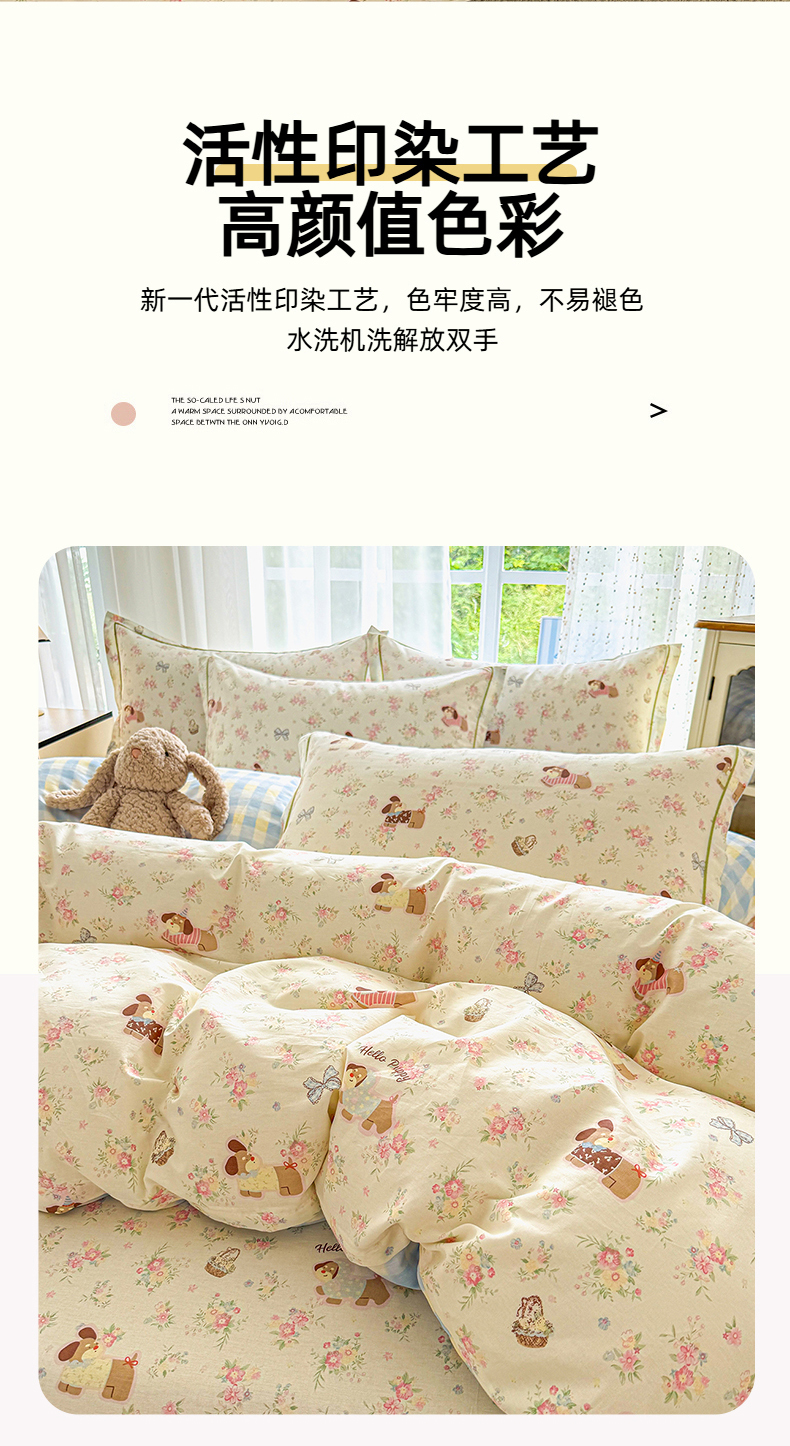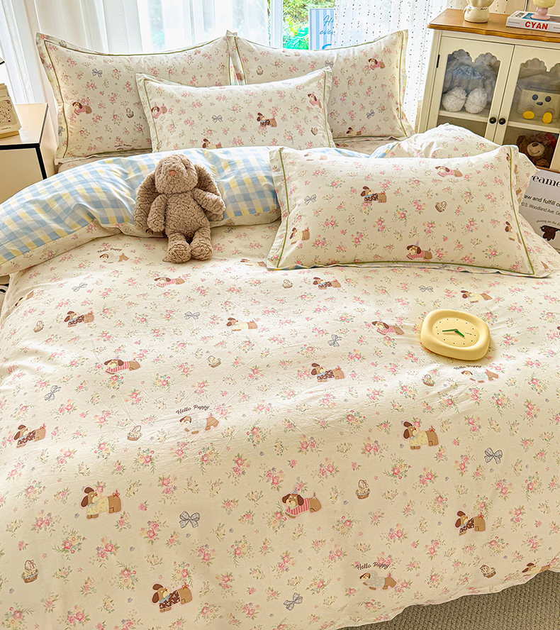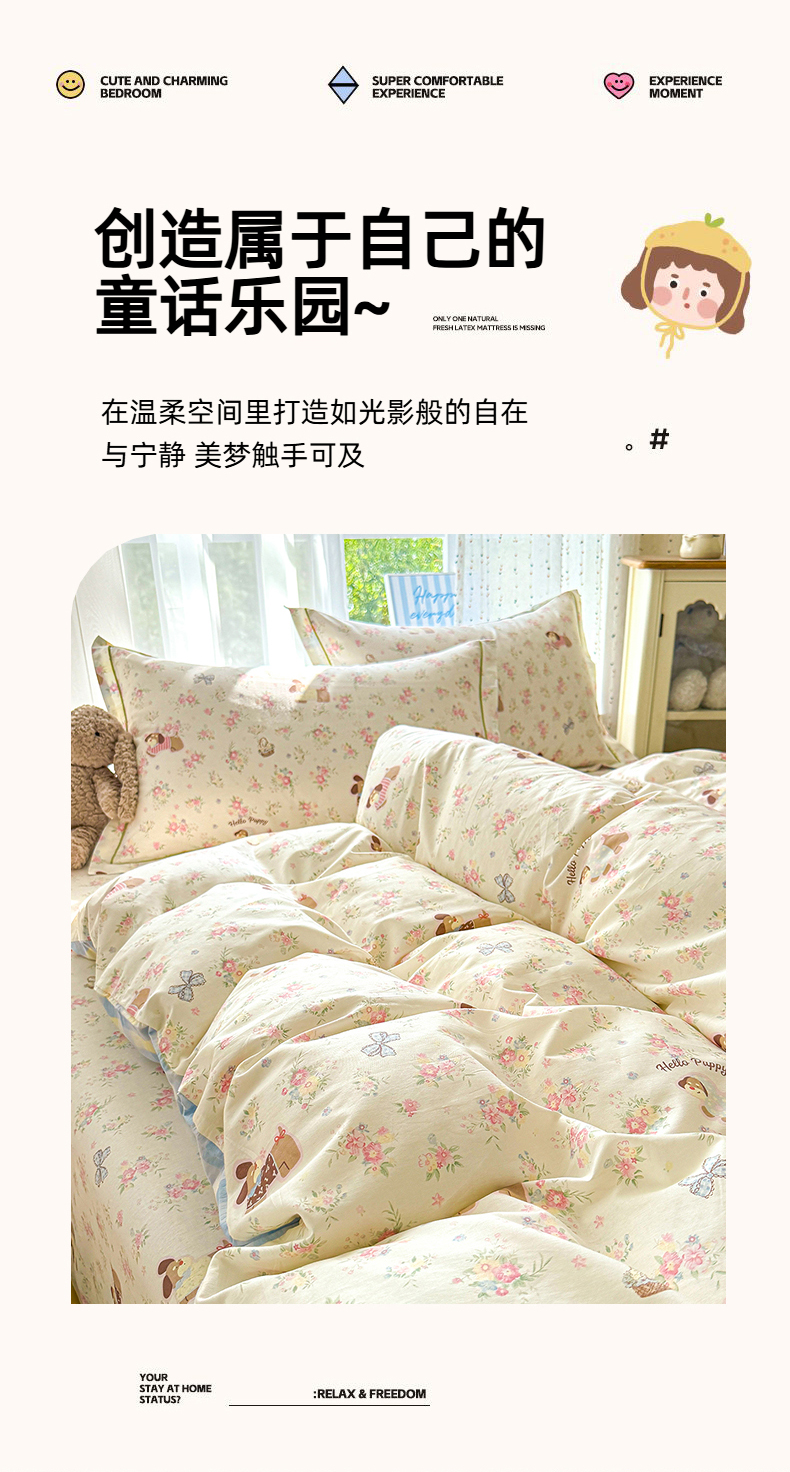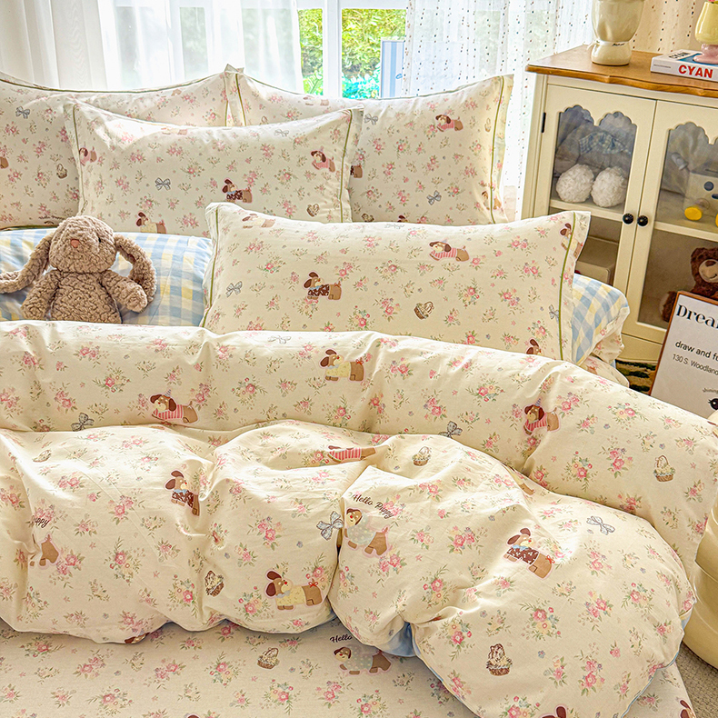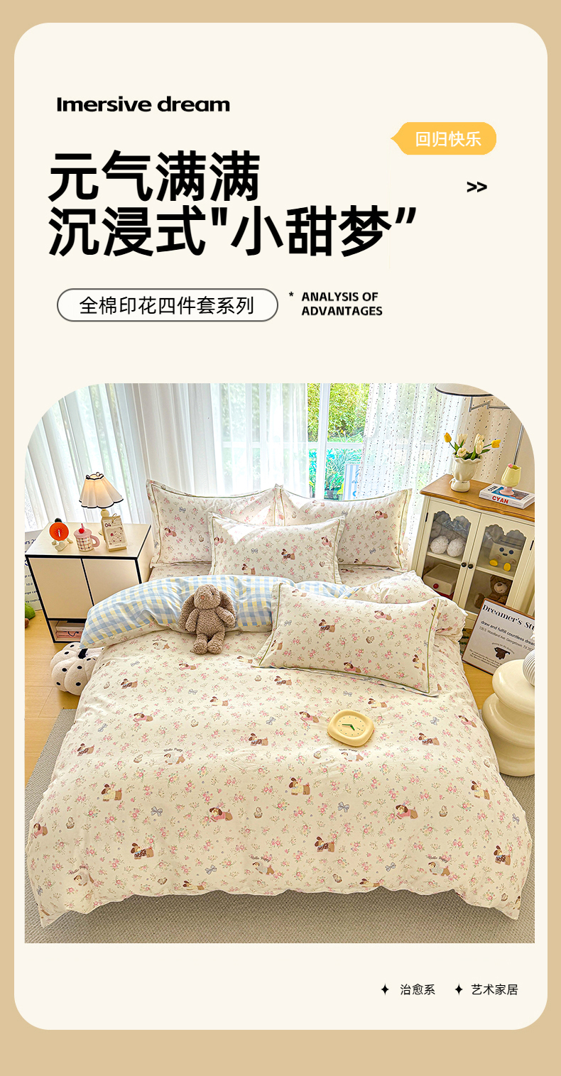 当前位置: 91家纺网 > 商品网购 > 床品套件 > 四件套 > 全棉普通四件套 > 红粉佳人家纺 2025新款12868纯棉系列全棉四件套 花田小狗