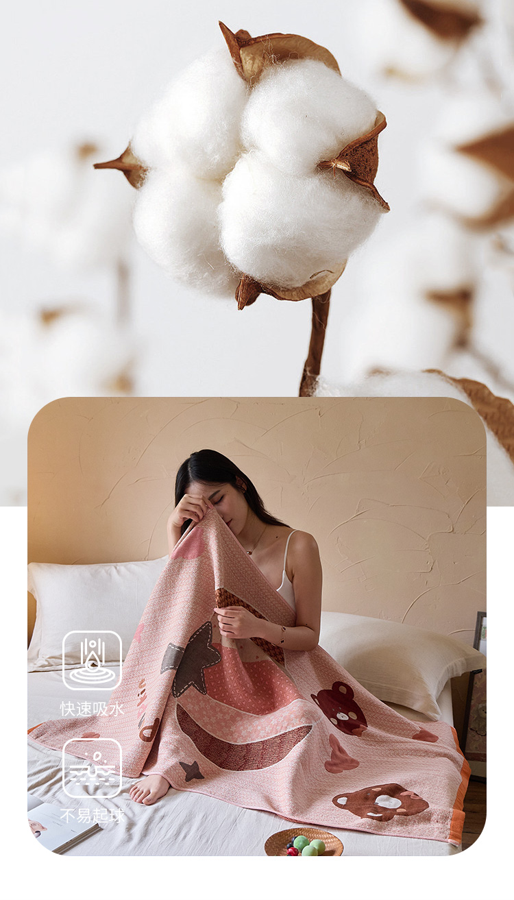 商品名称:(总)沐瑟家纺 2025新款卡通A类全棉四层纱布浴巾加大毛巾-第五组