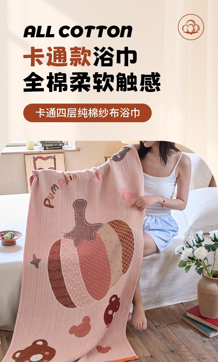 (总)沐瑟家纺 2025新款卡通A类全棉四层纱布浴巾加大毛巾-第五组