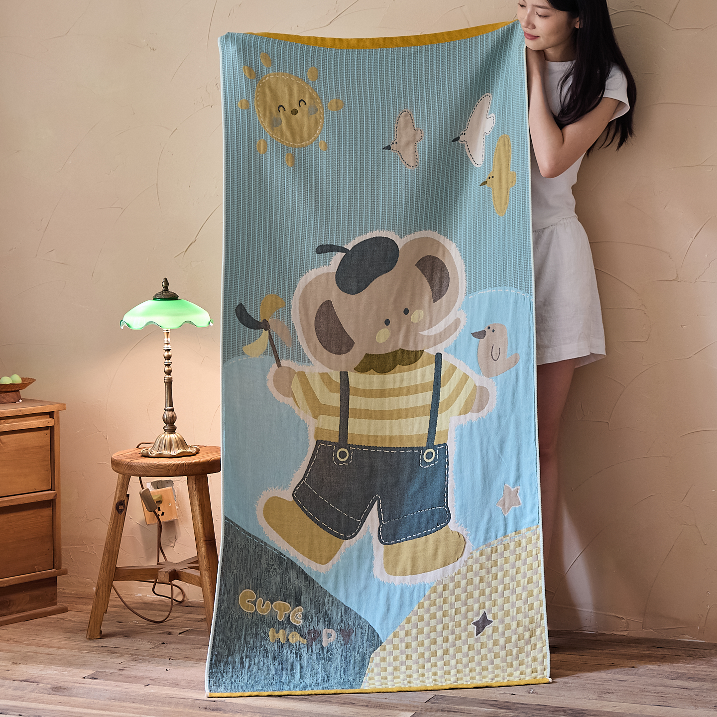 • 91家纺网 家纺一手货源 找家纺 沐瑟家纺 2025新款卡通A类全棉四层纱布浴巾加大毛巾-第五组 贴布熊 150*75cm