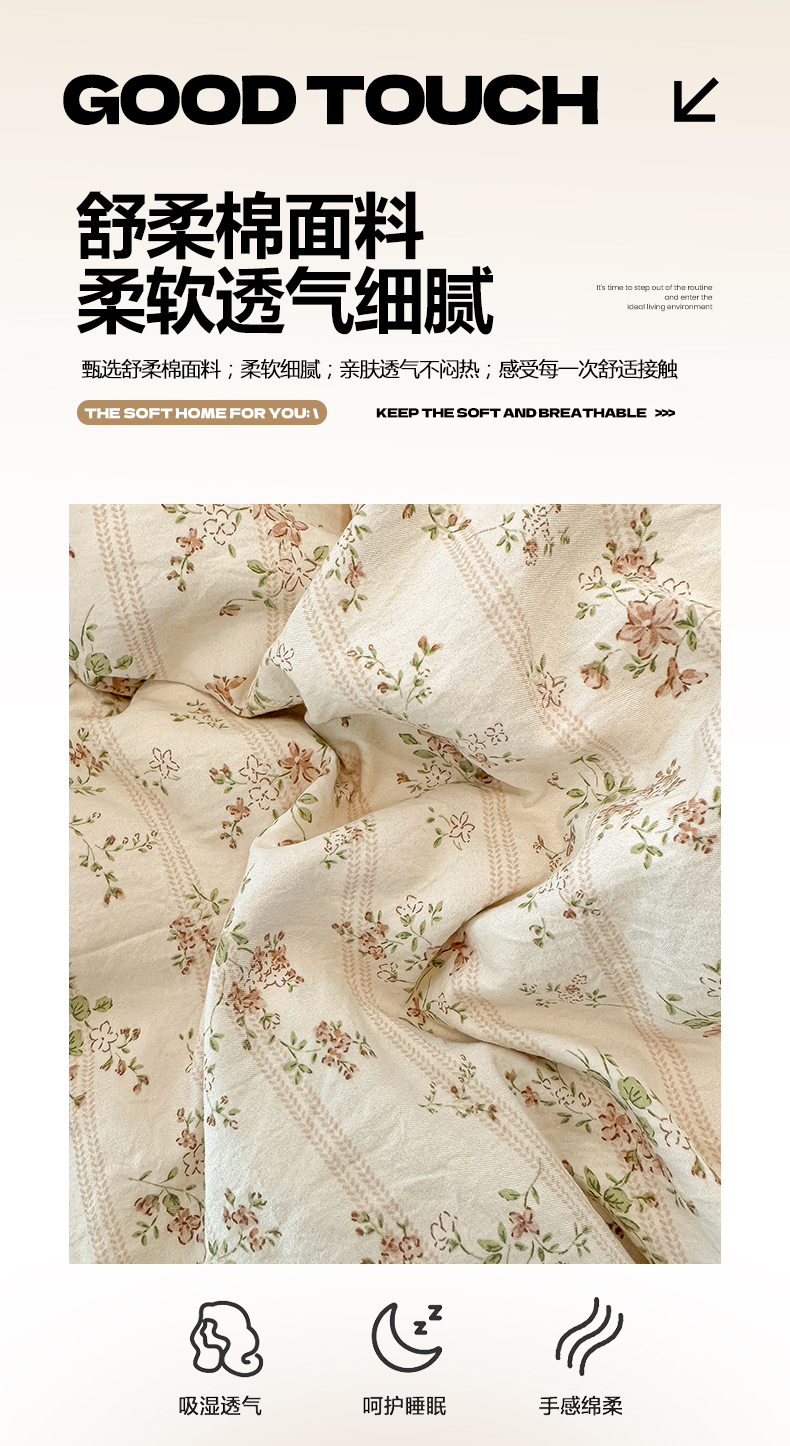 当前位置: 91家纺网 > 商品网购 > 床品套件 > 四件套 > 其它四件套 > 多乐家纺 2025新款秋冬韩系花卉舒柔棉印花四件套 春日