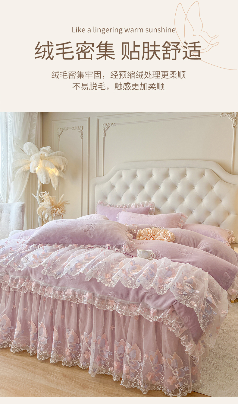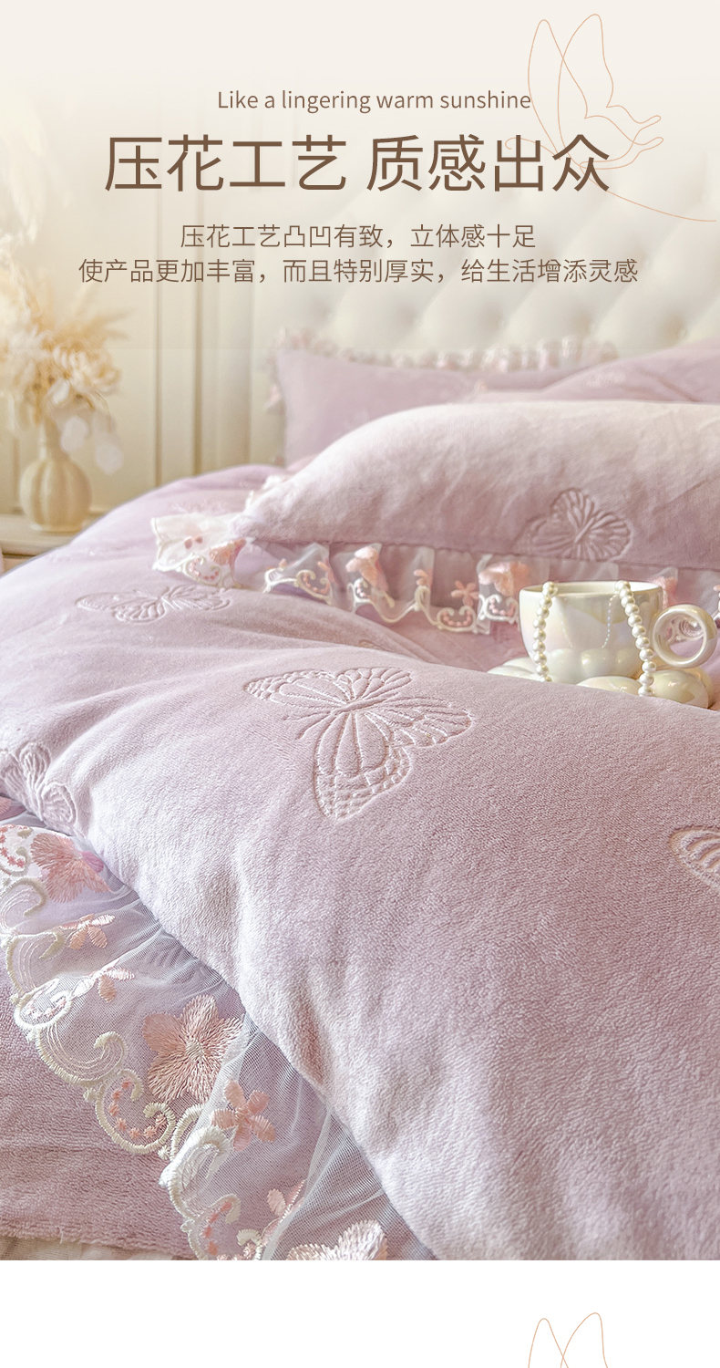 当前位置: 91家纺网 > 商品网购 > 床品套件 > 四件套 > 牛奶绒四件套 > 网红馆(ck家纺) 2025新款牛奶绒刺绣四件套-蝴蝶纷飞系列 蝴蝶纷飞-紫