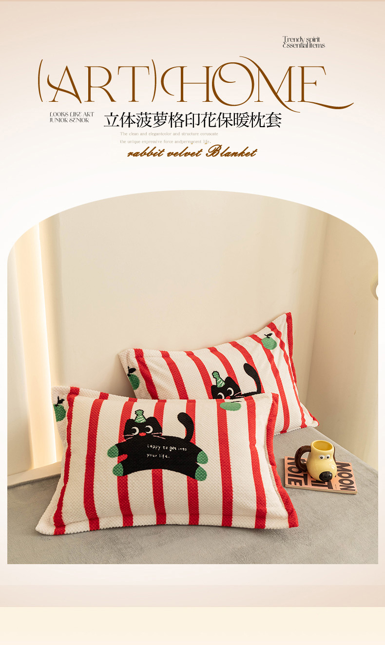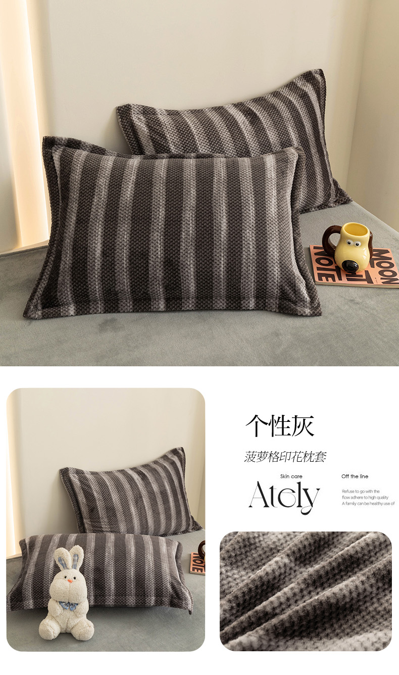 倾慕家纺 2026新款立体菠萝格印花单枕套 牛奶咖啡
