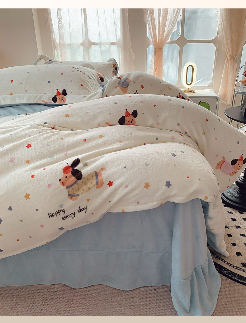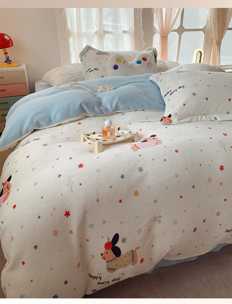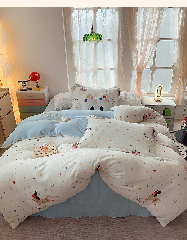 奈萝家纺 2025新款加厚小清新印花牛奶绒三件套四件套 童趣星海