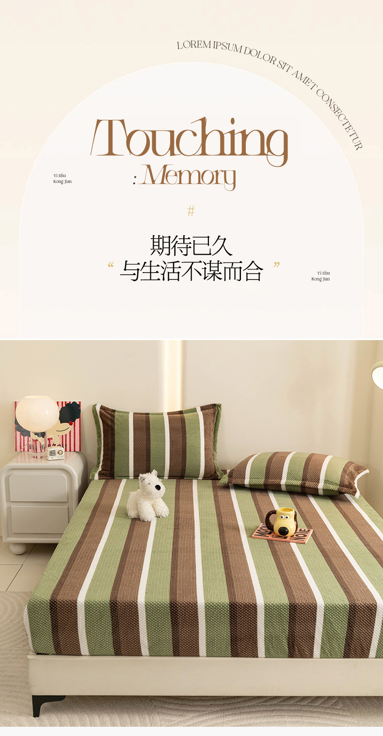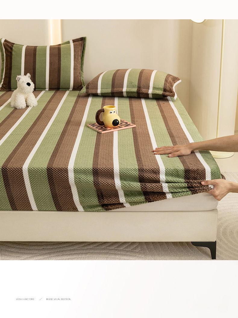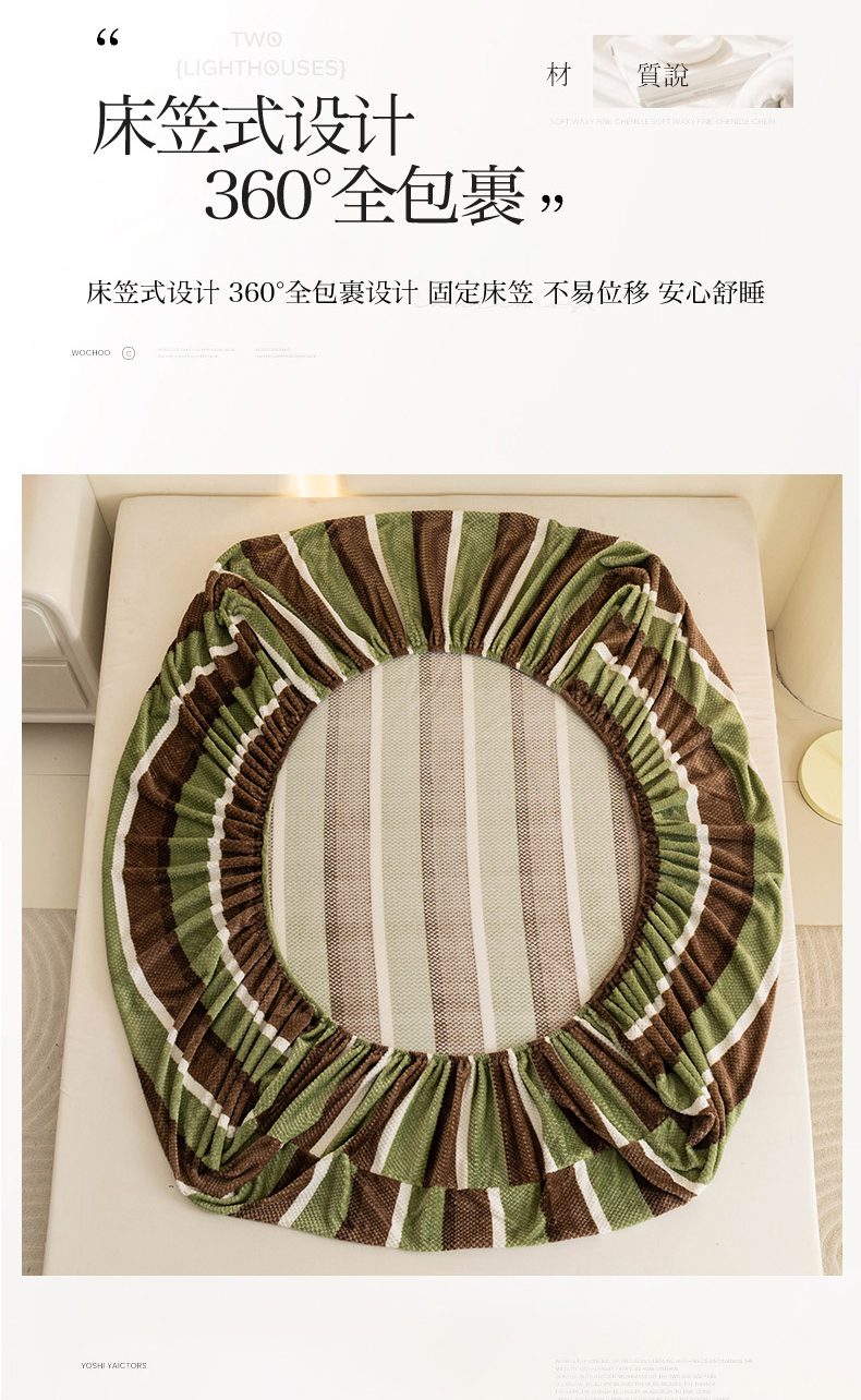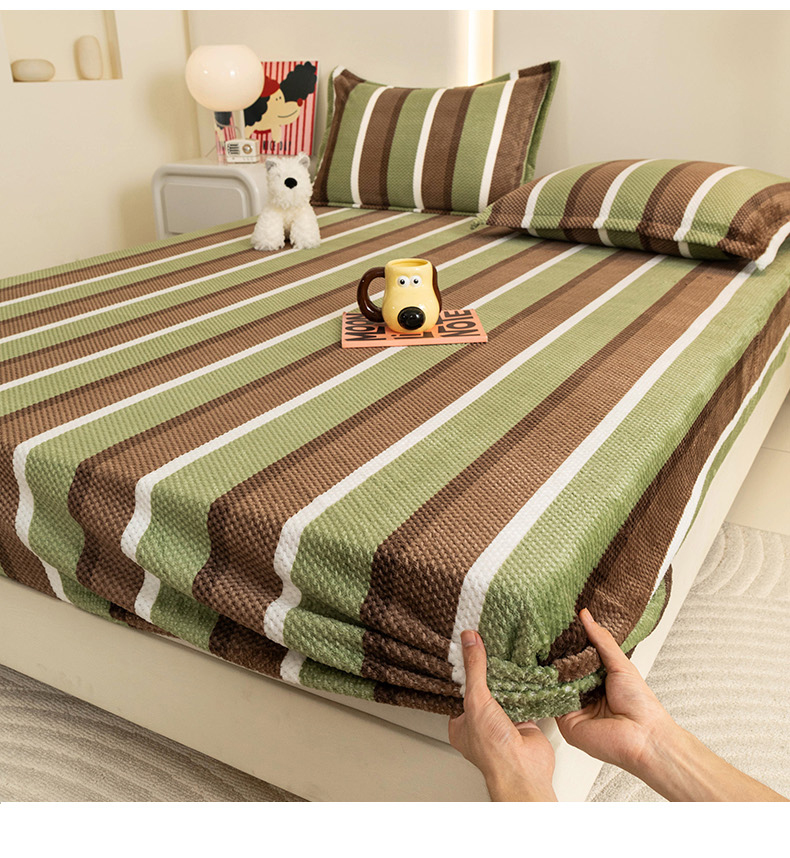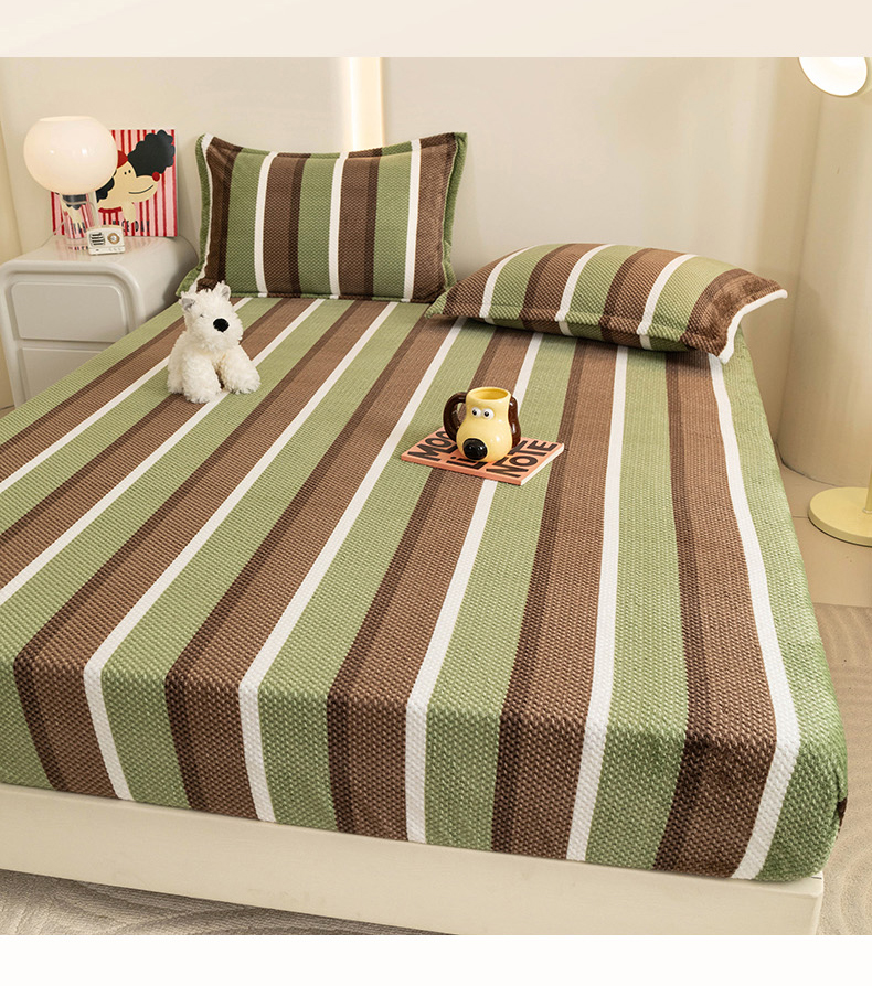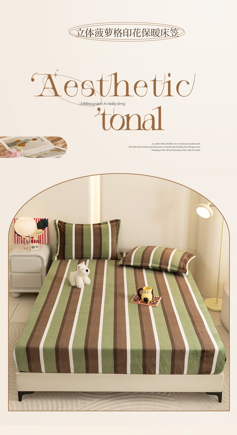 倾慕家纺 2026新款立体菠萝格印花保暖床笠 自由绿