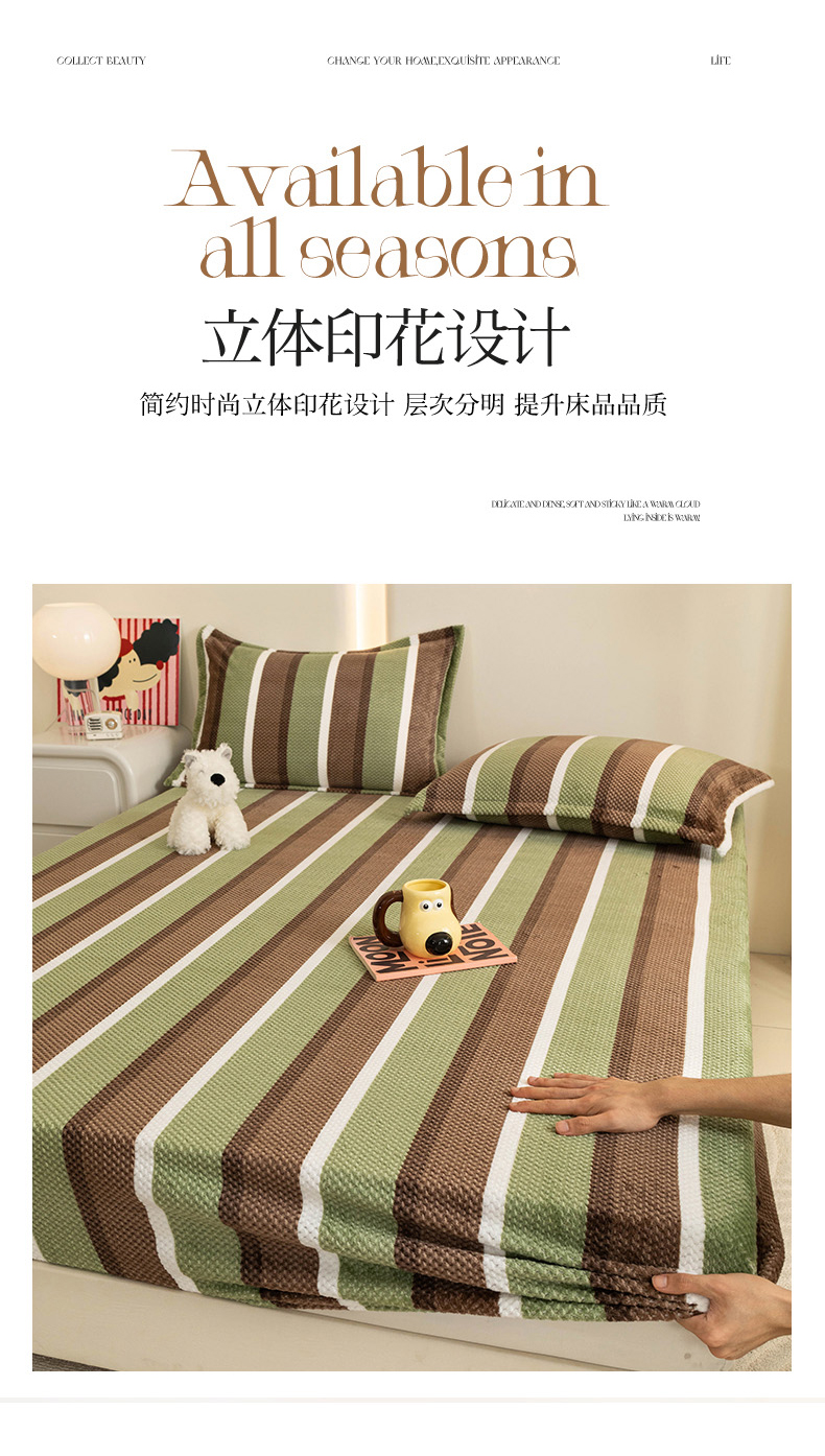 (总)2026年新款PE豆豆提花凉席花卉系列-床笠款,布达春雨,大叶绿,枫叶,满江花,迷宫灰,树树相邻,夏日清新卡其,夏日清新蓝,夏日清新绿,写意玫瑰,杏叶灰,杏叶卡其