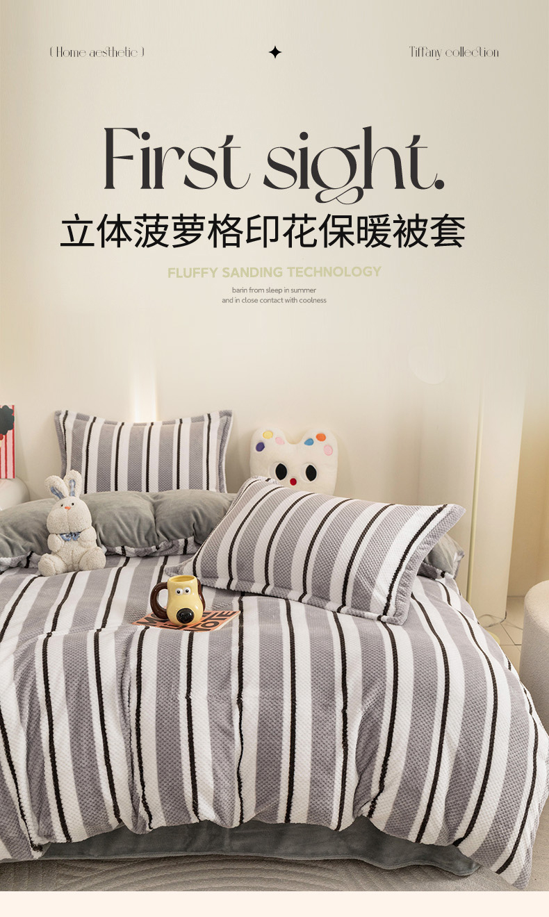 倾慕家纺 2026新款立体菠萝格印花保暖单被套 挪威灰