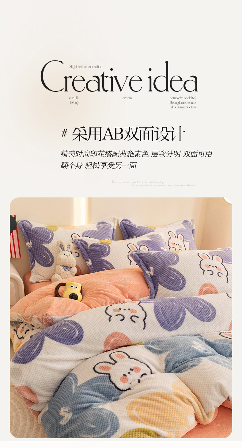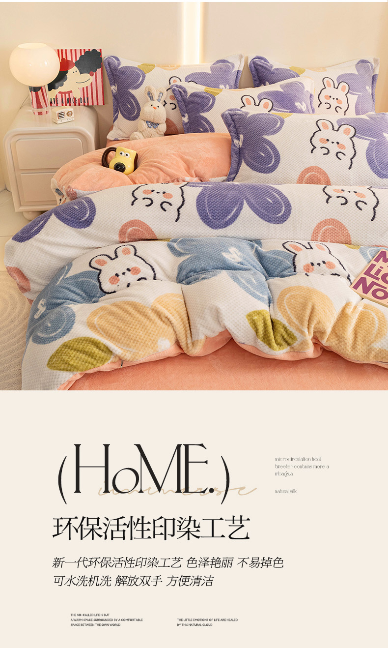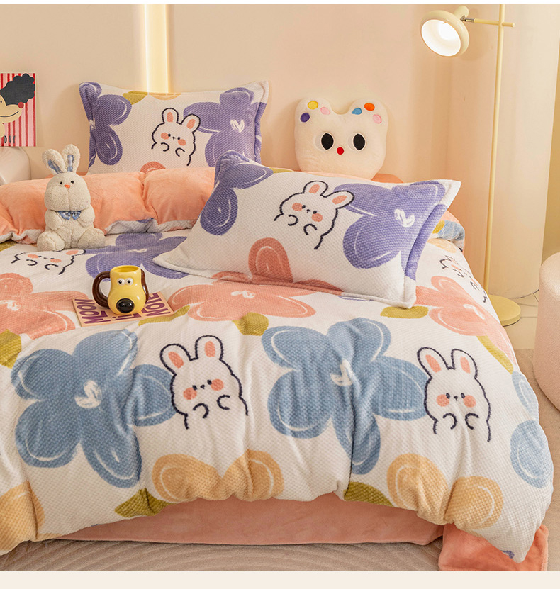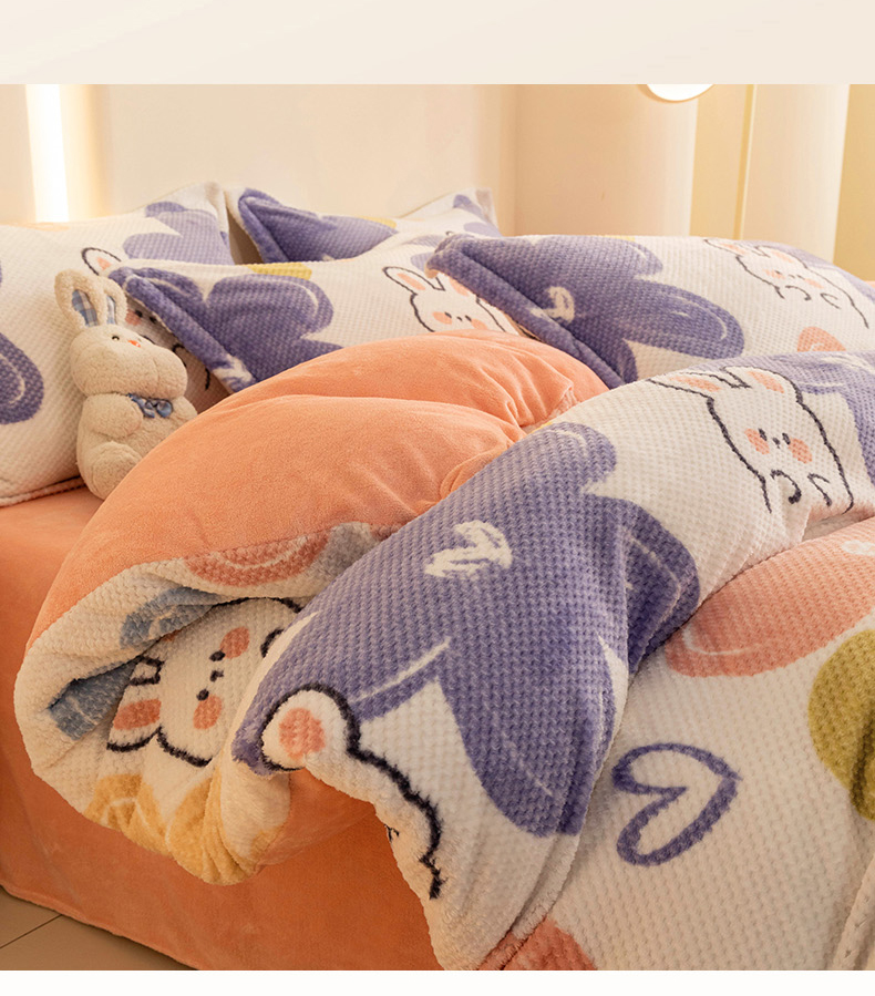 当前位置: 91家纺网 > 商品网购 > 床品套件 > 四件套 > 其它四件套 > 倾慕家纺 2026新款立体菠萝格印花保暖四件套 七彩小兔