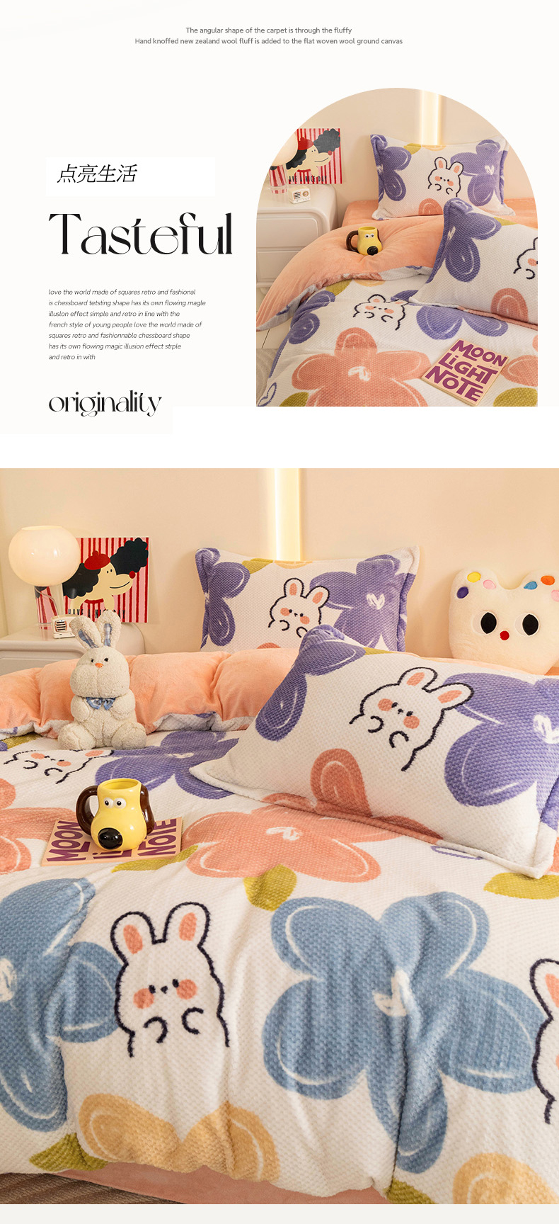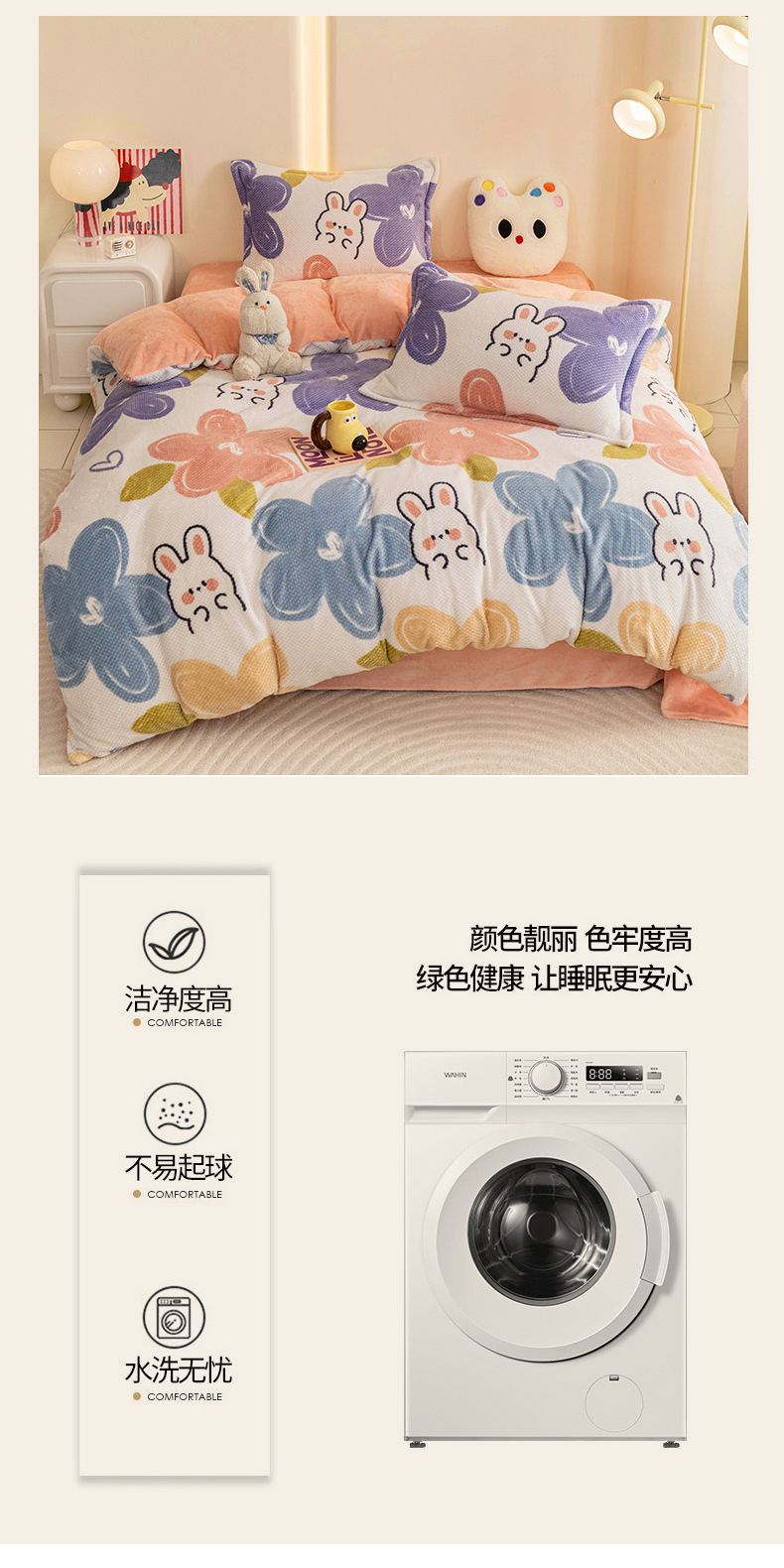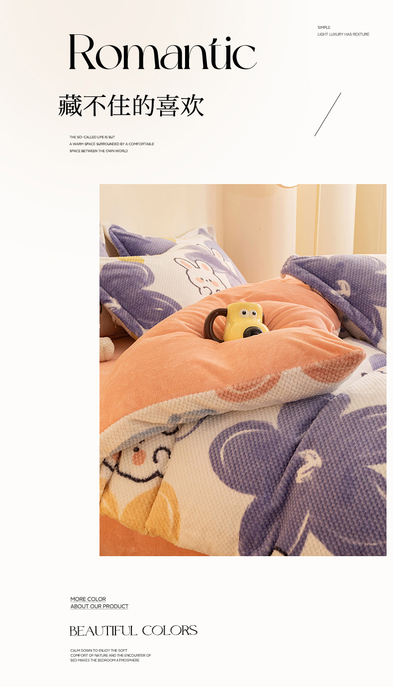 当前位置: 91家纺网 > 商品网购 > 床品套件 > 四件套 > 其它四件套 > 倾慕家纺 2026新款立体菠萝格印花保暖四件套 七彩小兔