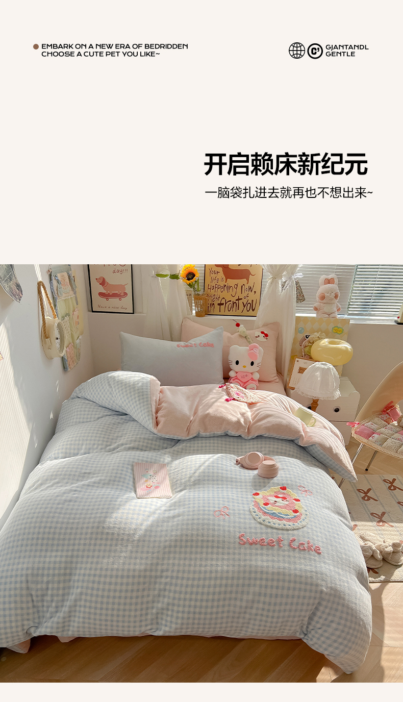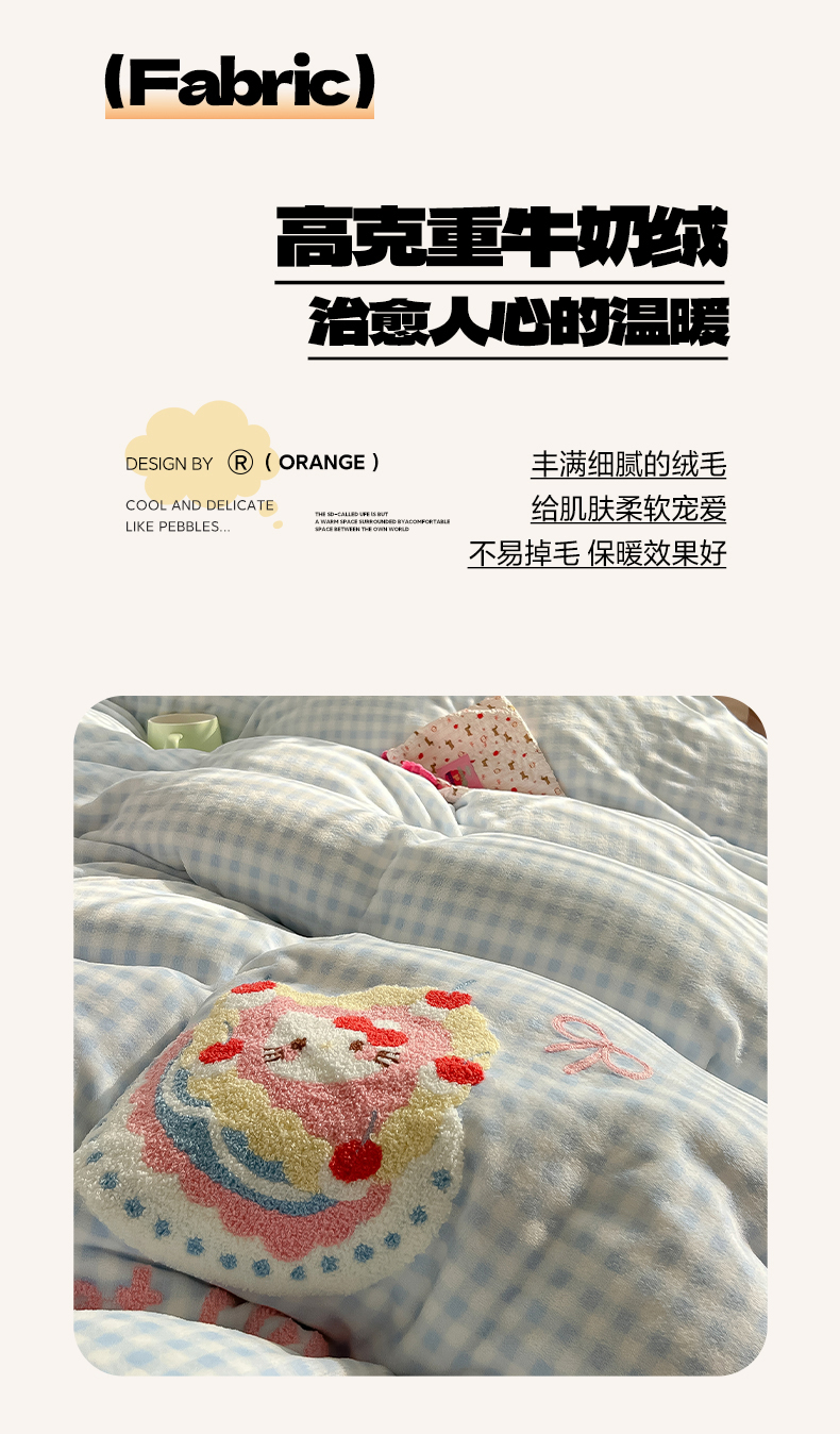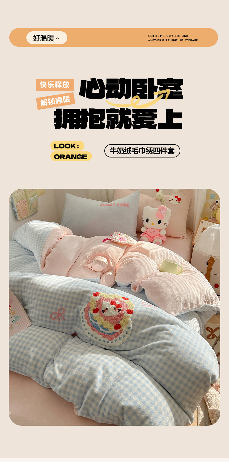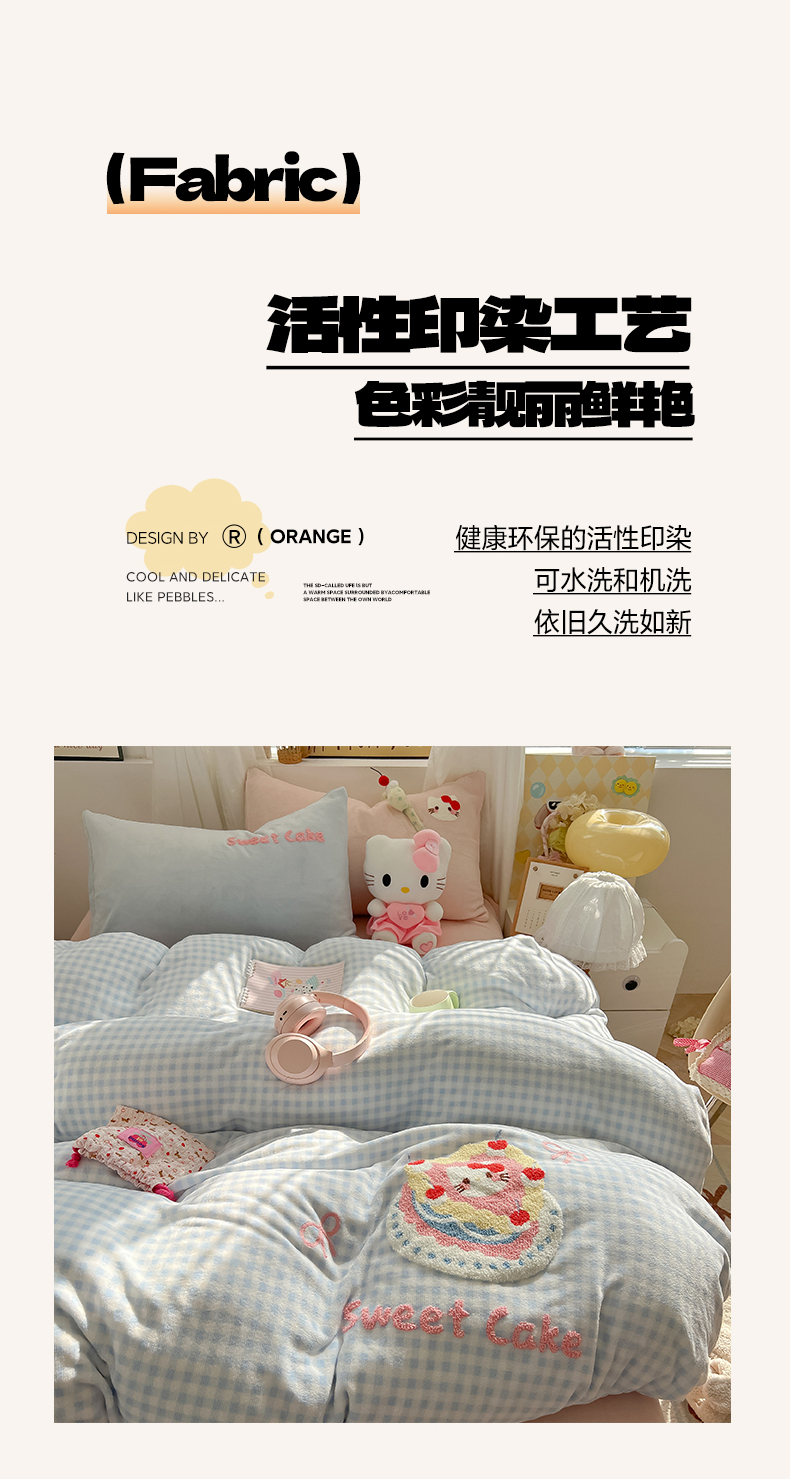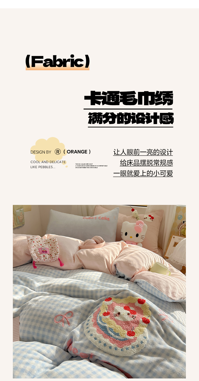 商品名称:韩都家居 2025新款牛奶绒毛巾绣四件套-系列一 蛋糕猫-兰格