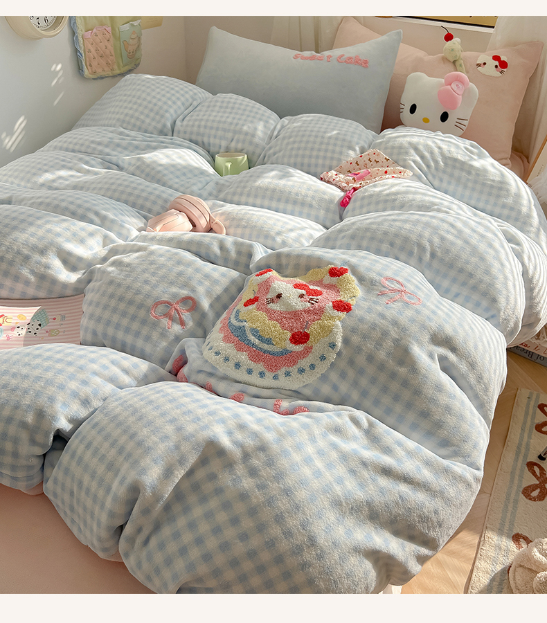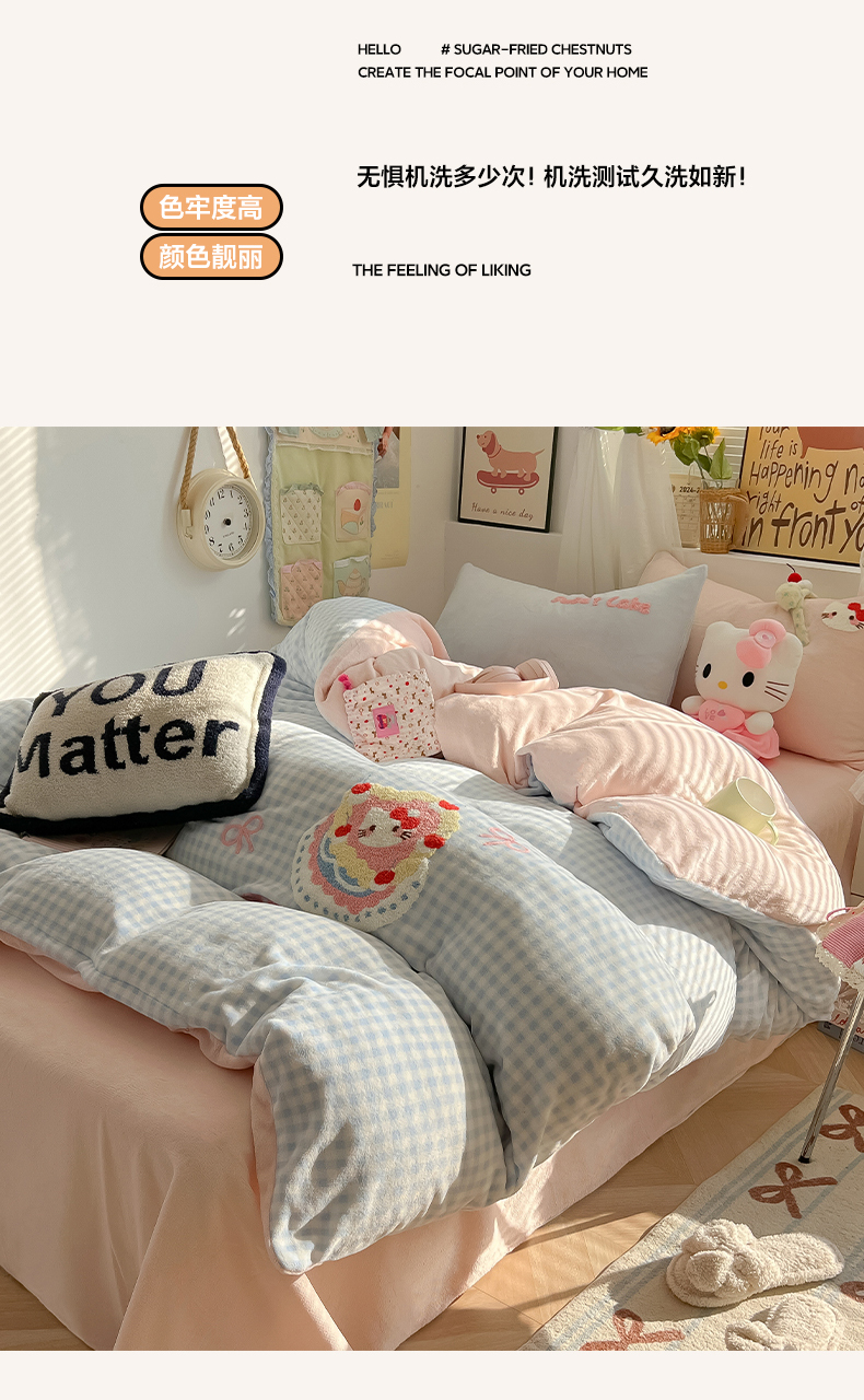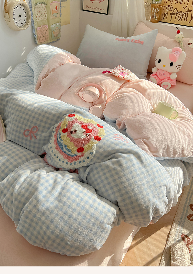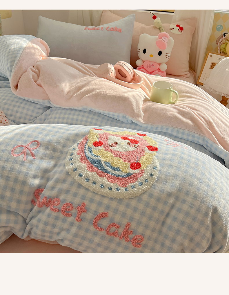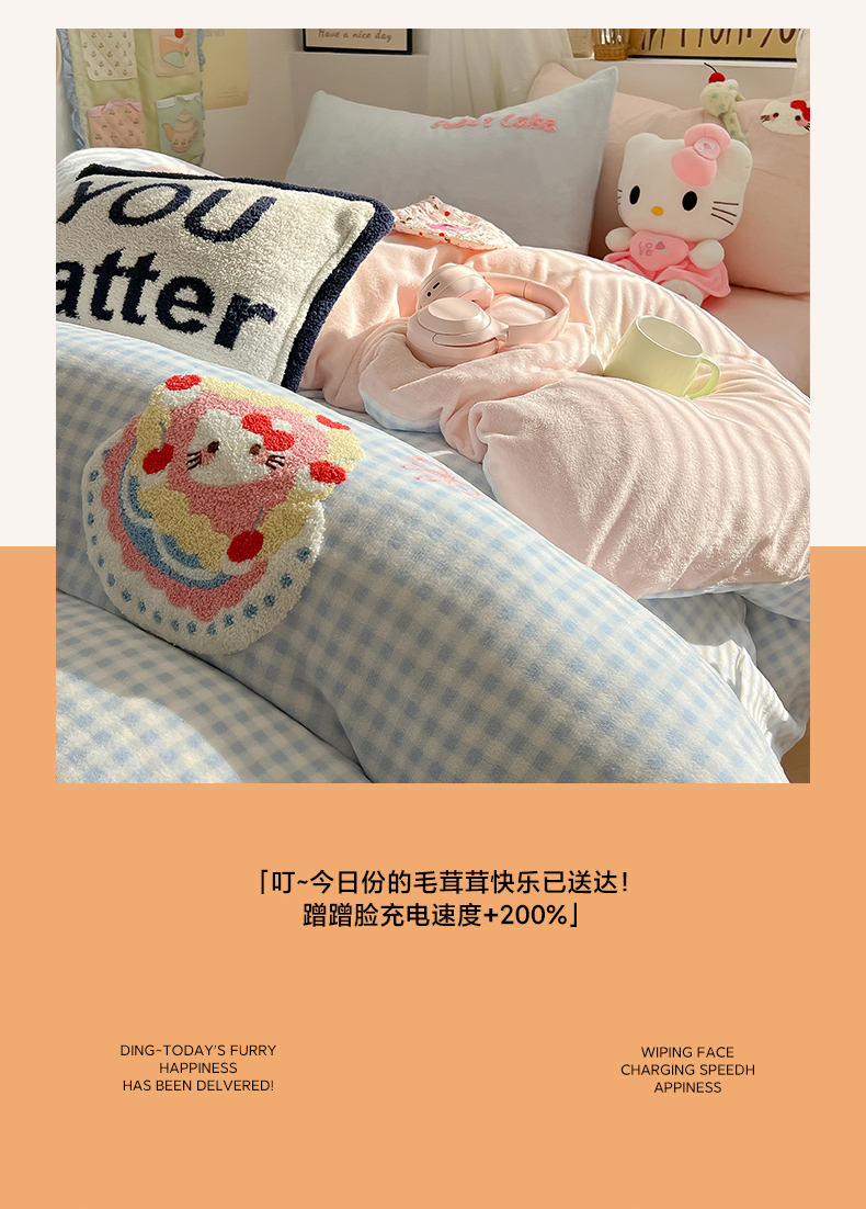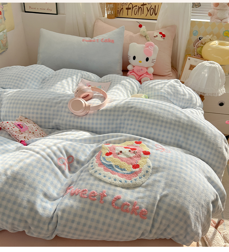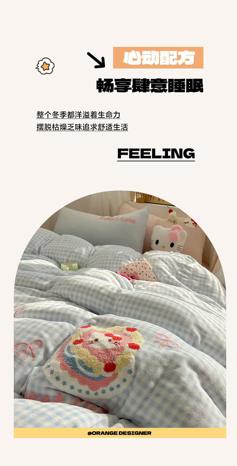 商品名称:韩都家居 2025新款牛奶绒毛巾绣四件套-系列一 蛋糕猫-兰格