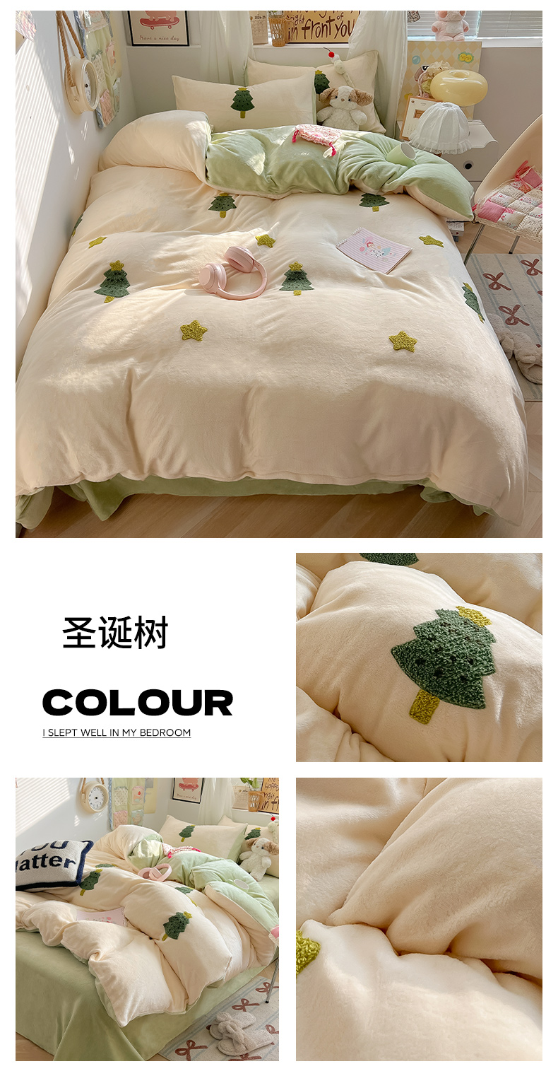 (总)韩都家居 2025新款卡通贴布绣系列加厚牛奶绒四件套,乖乖兔,冬日猫咪,苹果狗狗,绅士小狗,顽皮西高地,幸运小熊