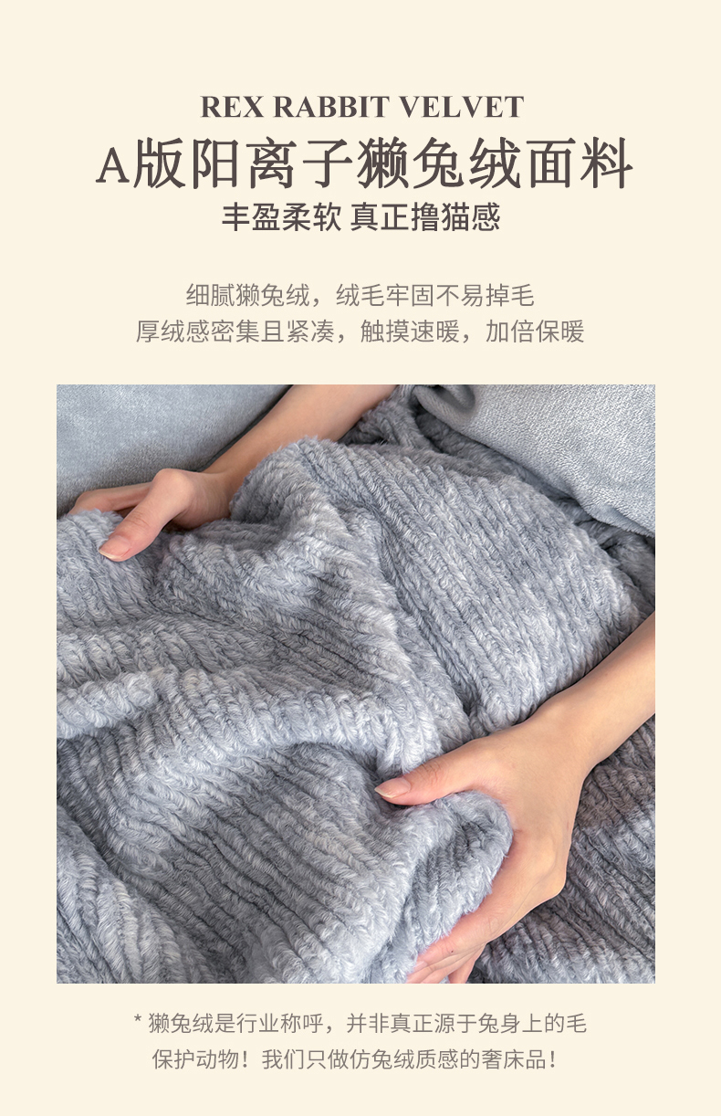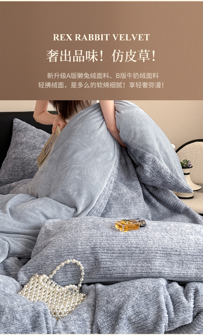 当前位置: 91家纺网 > 商品网购 > 床品套件 > 四件套 > 兔毛绒四件套 > 眠博士 2025新款阳离子兔兔绒四件套 兔兔绒阳离子-抽条雾蓝