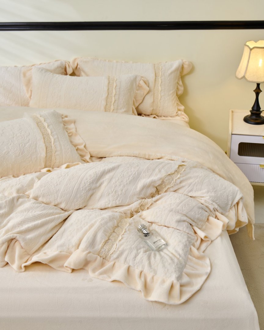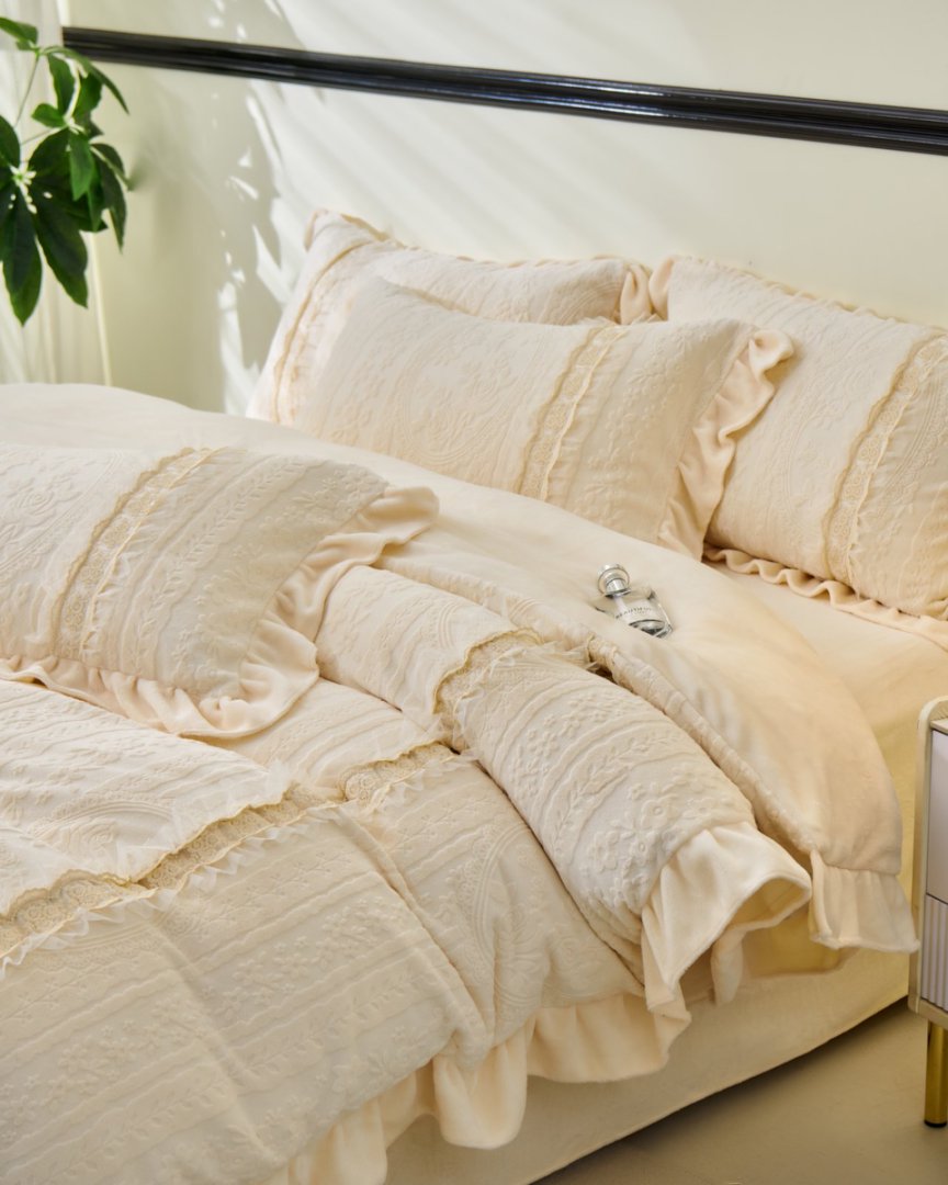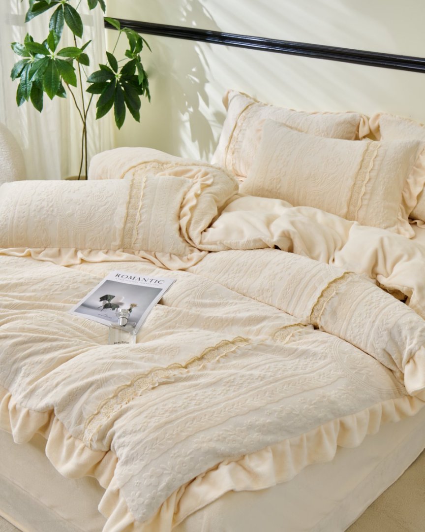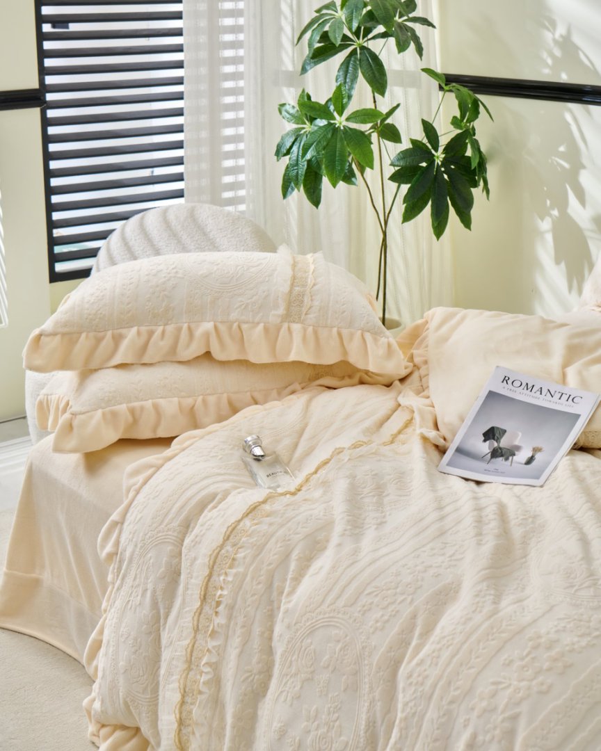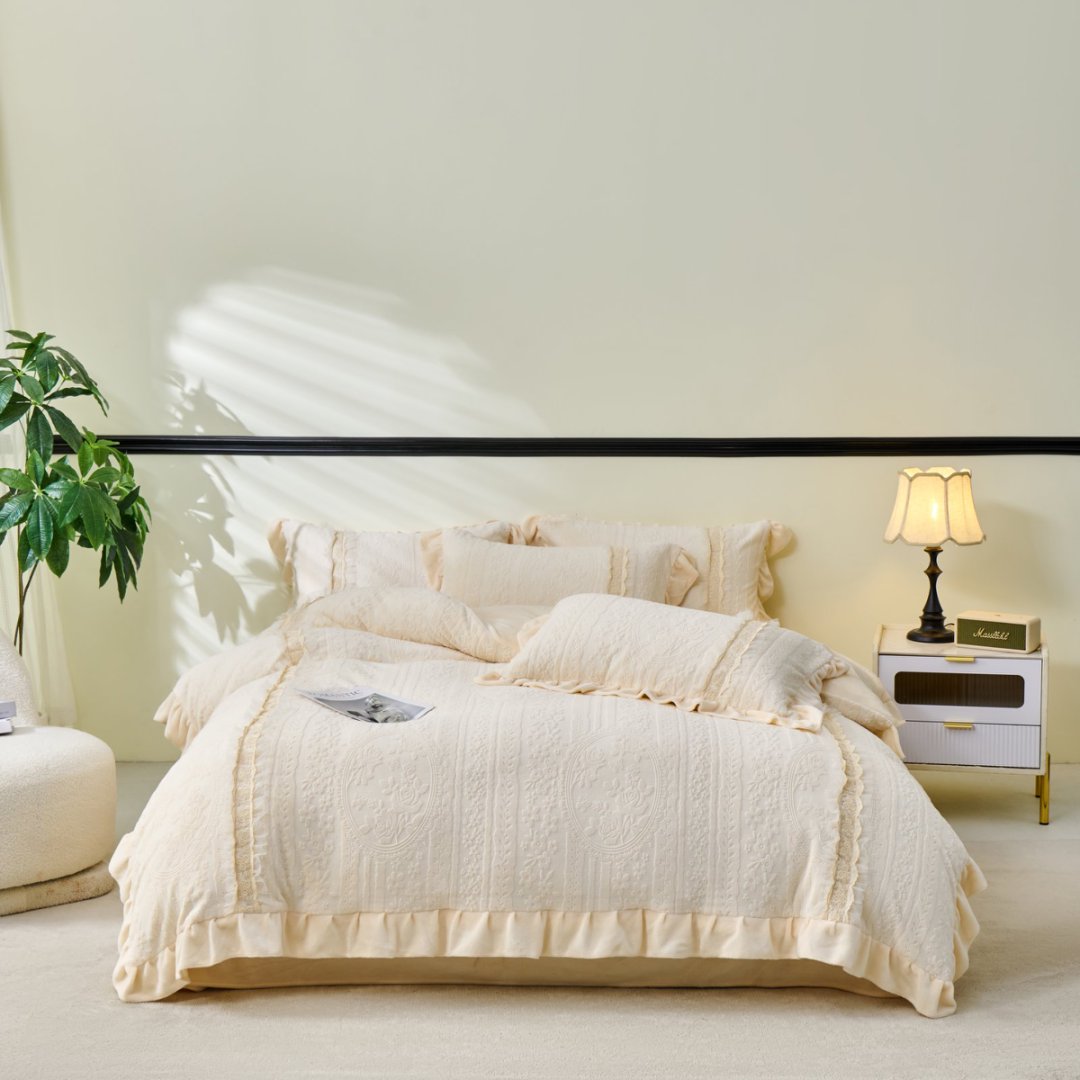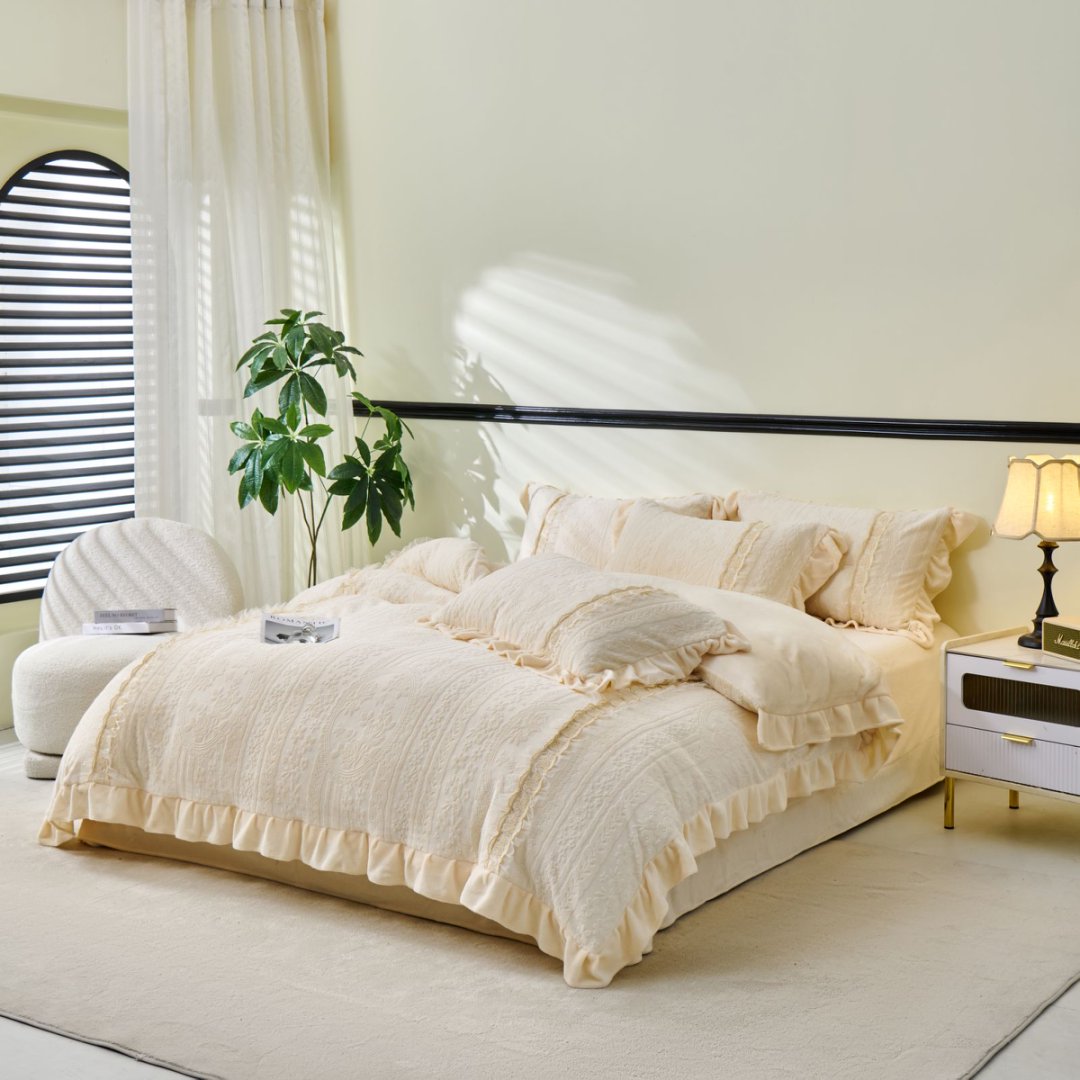 商品名称:七里香 2025新款雕花绒牛奶绒工艺款四件套-偏爱系列 偏爱-米黄