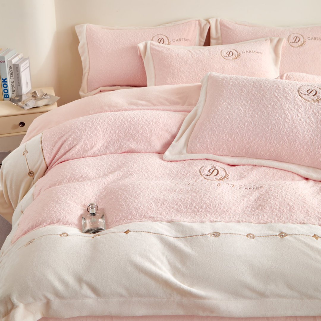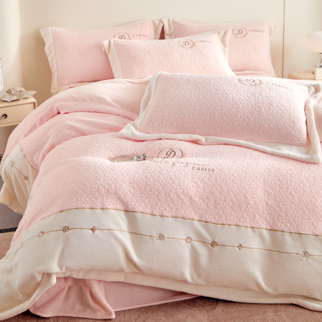 (总)七里香 2025新款雕花绒牛奶绒工艺款四件套-偏爱系列,偏爱-粉玉,偏爱-蓝色,偏爱-米黄,偏爱-紫色