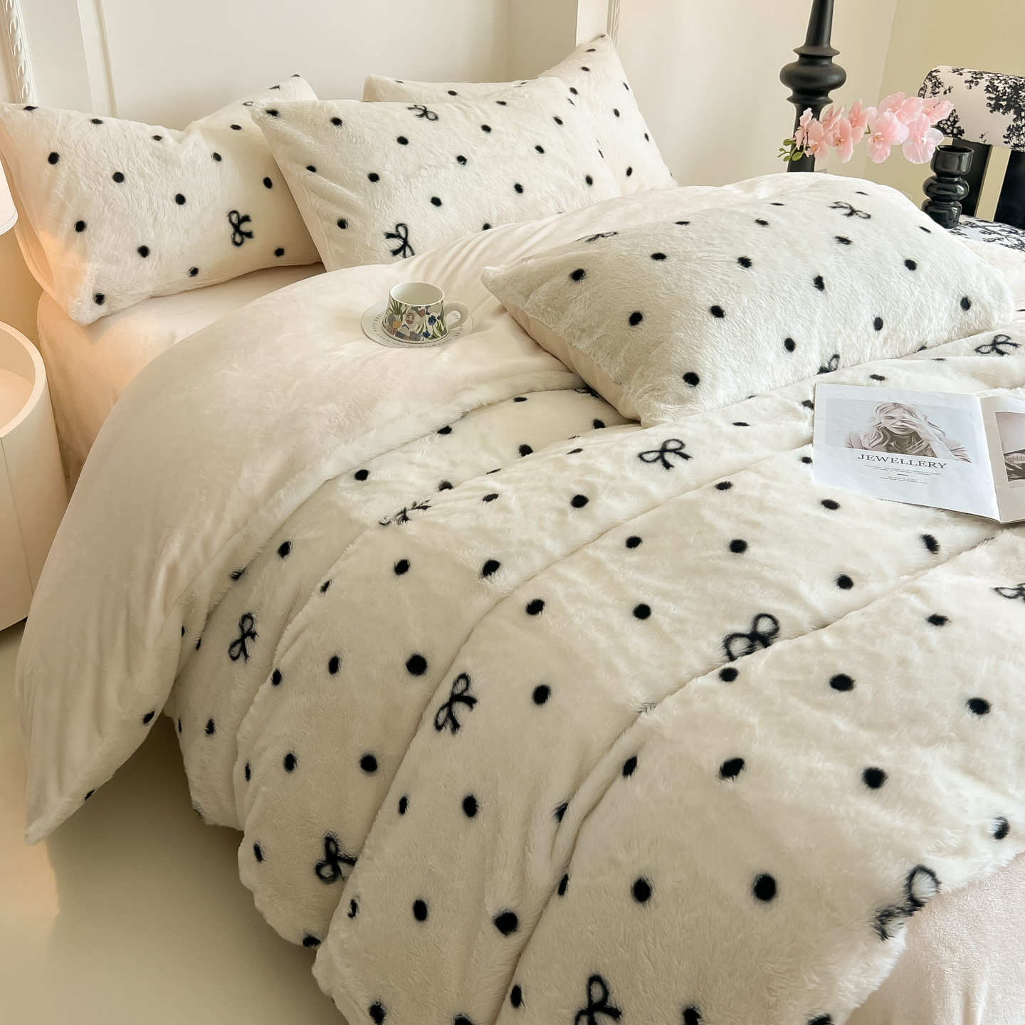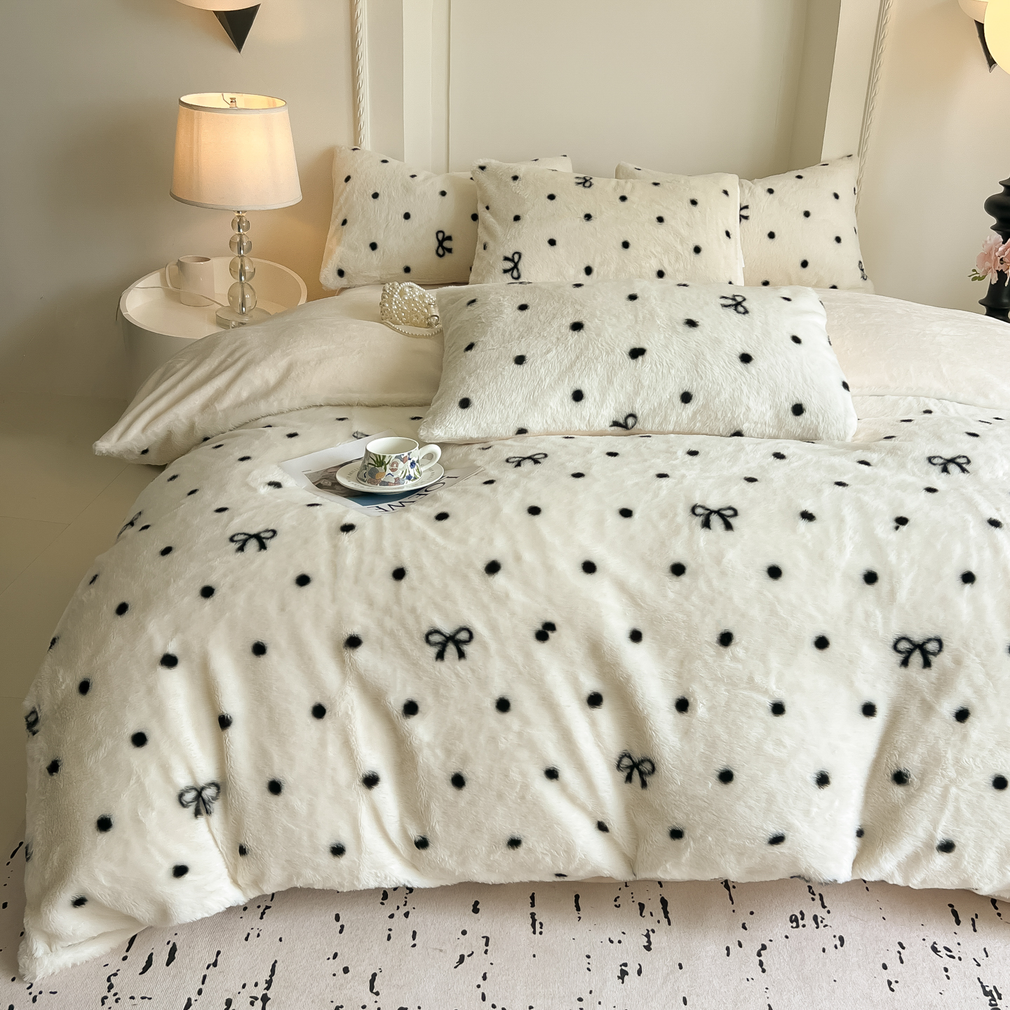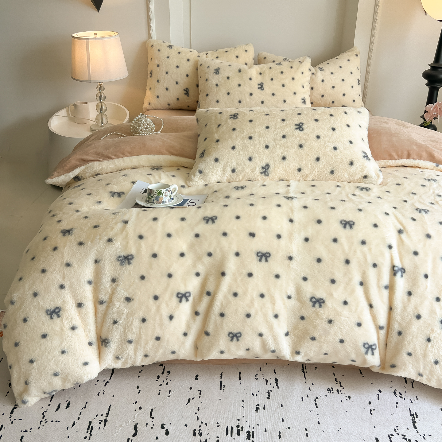 当前位置: 91家纺网 > 商品网购 > 床品套件 > 四件套 > 兔毛绒四件套 > 同田家纺 2025新款法式风兔绒牛奶绒四件套 波点