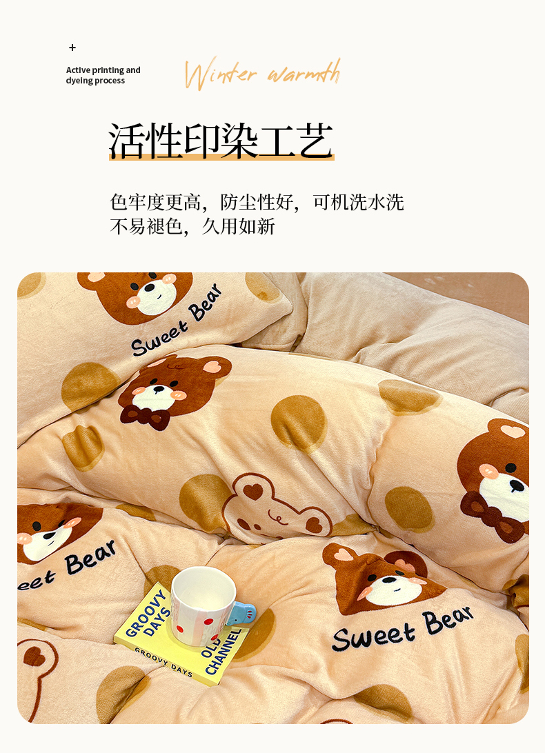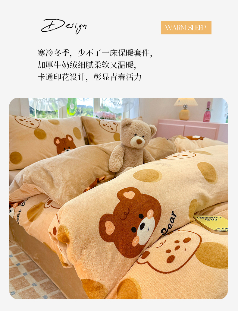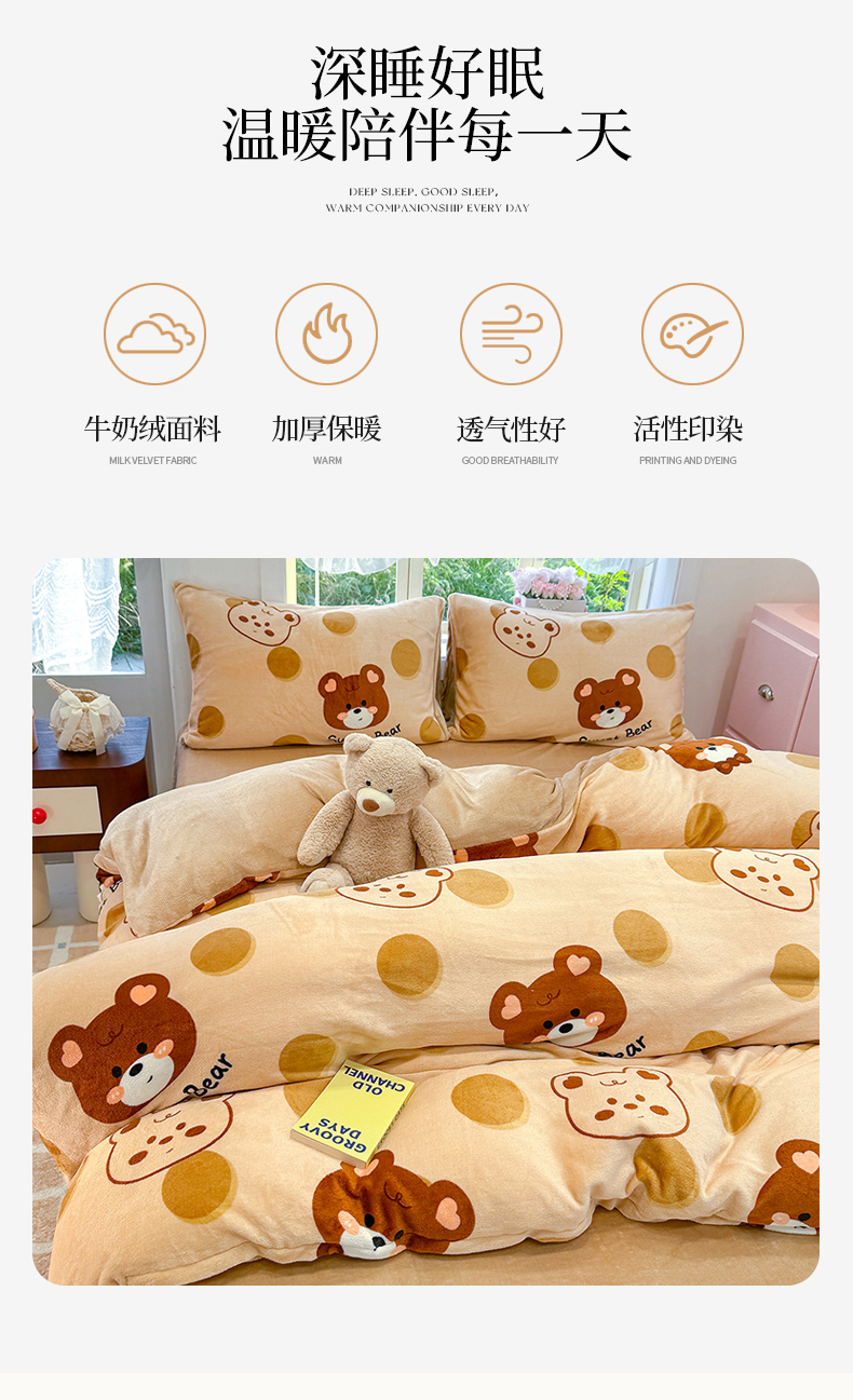 当前位置: 91家纺网 > 商品网购 > 床品套件 > 四件套 > 牛奶绒四件套 > 枋梢家纺 2025新款加厚牛奶绒保暖四件套 甜心小熊
