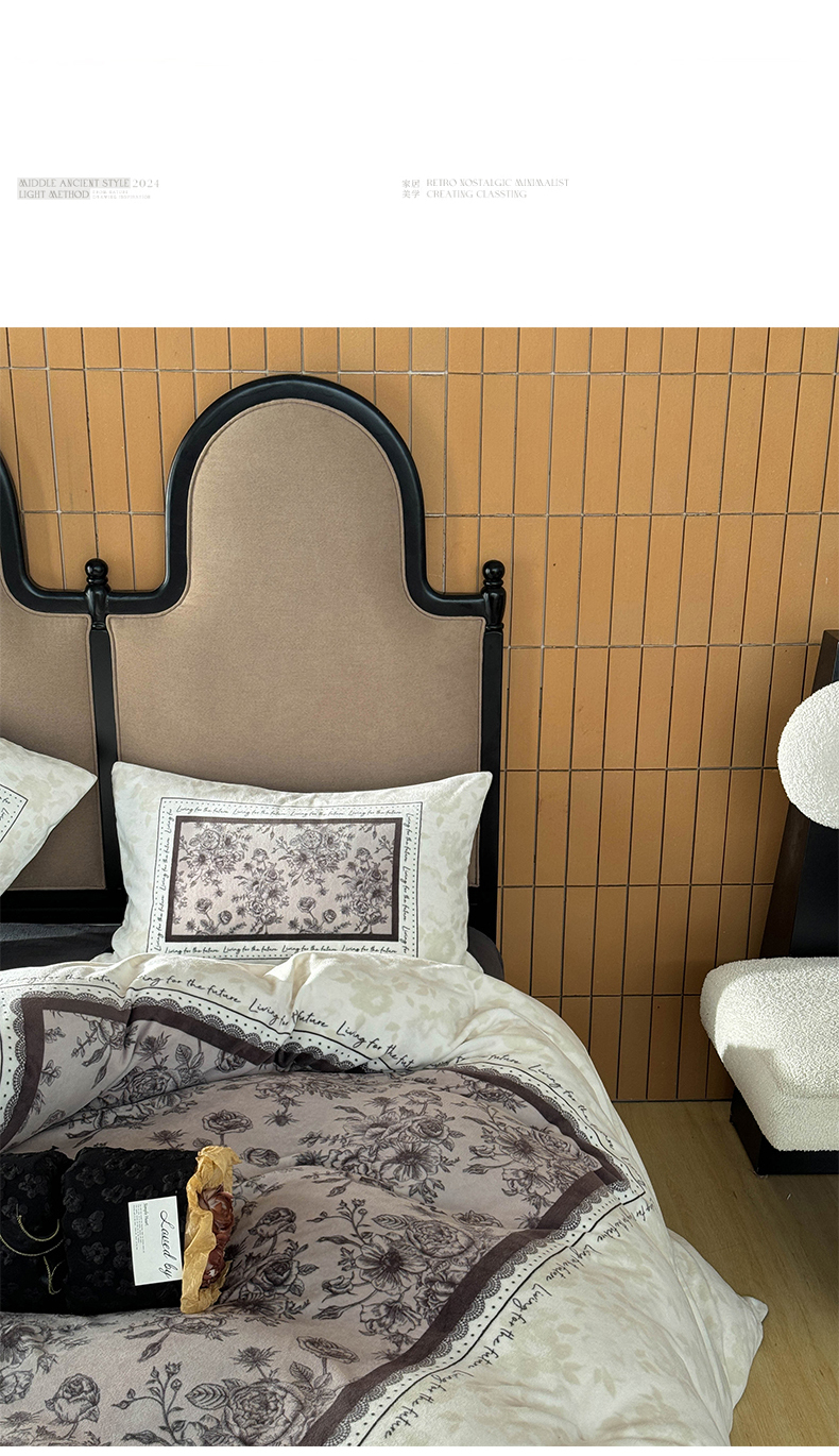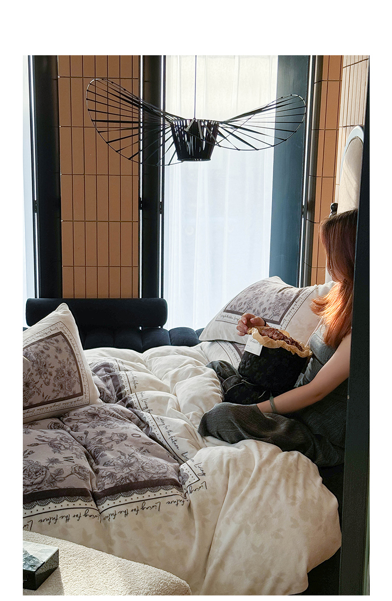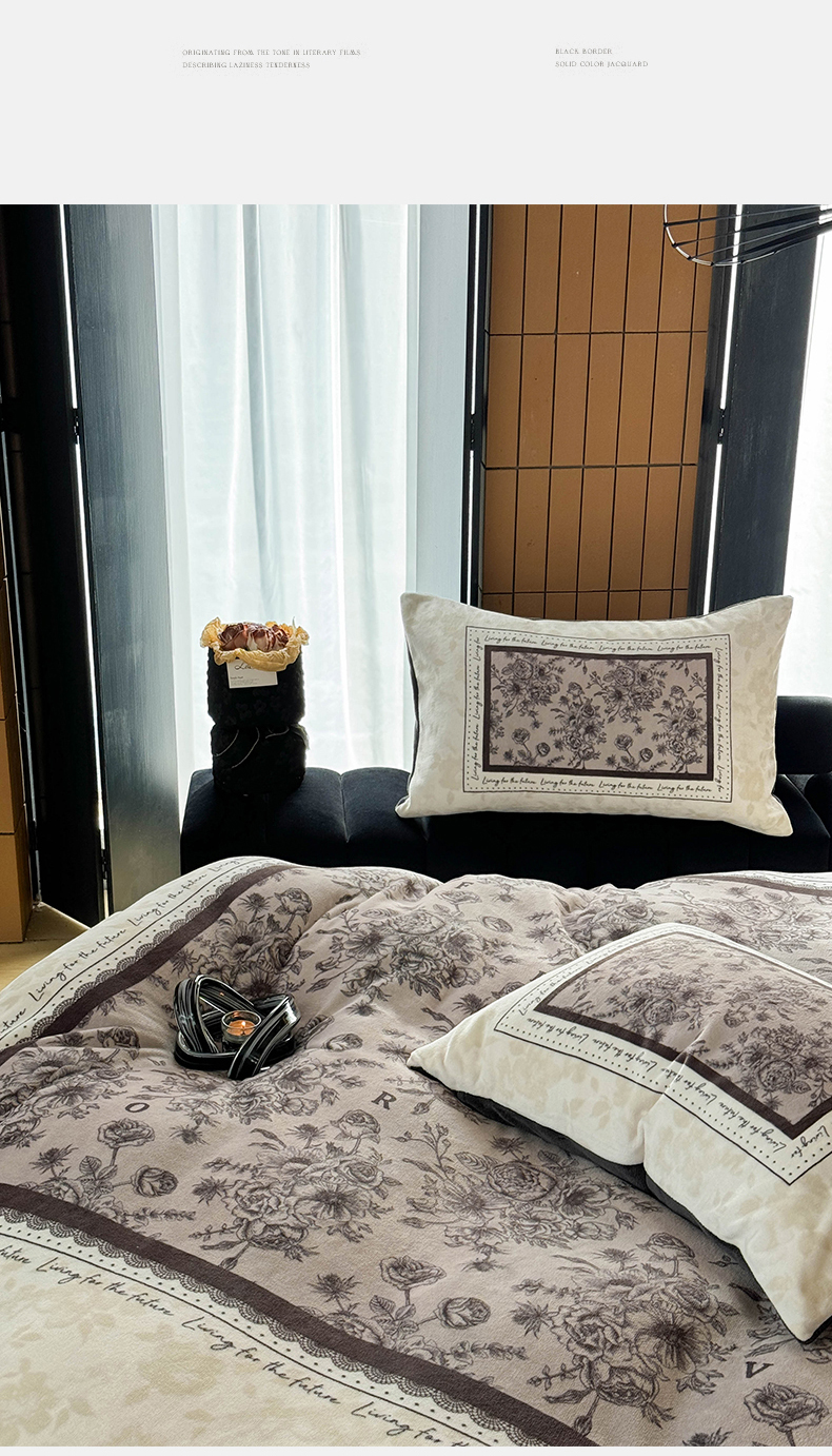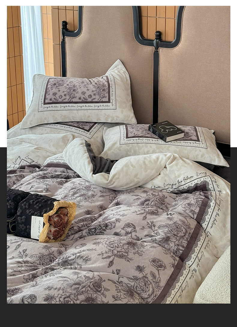 商品名称:Sweet dreams甜梦 2025新款数码印花加厚复古碎花牛奶绒四件套-摄影图 茶白