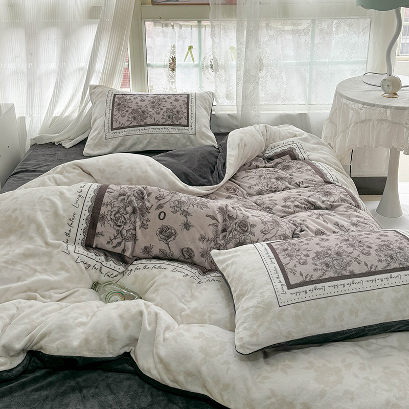 Sweet dreams甜梦 2025新款全消光数码印花加厚复古碎花牛奶绒四件套-风格3 爱丽丝