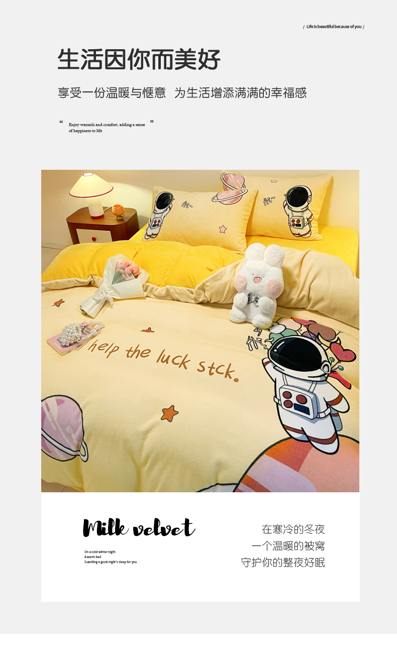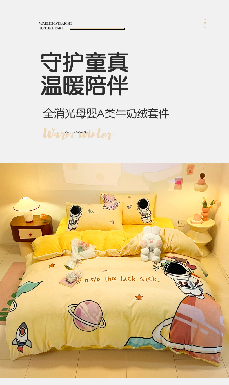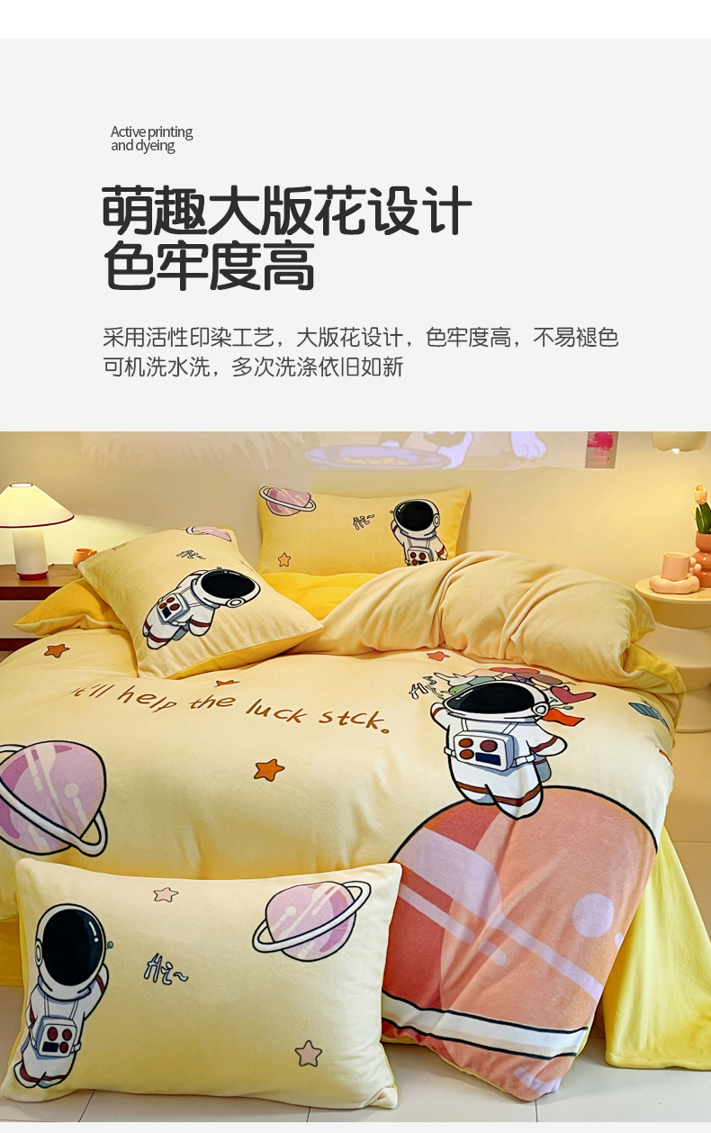 当前位置: 91家纺网 > 商品网购 > 床品套件 > 四件套 > 牛奶绒四件套 > (总)2025年新款 专版花型 高克重全消光A类儿童牛奶绒四件套-太空行