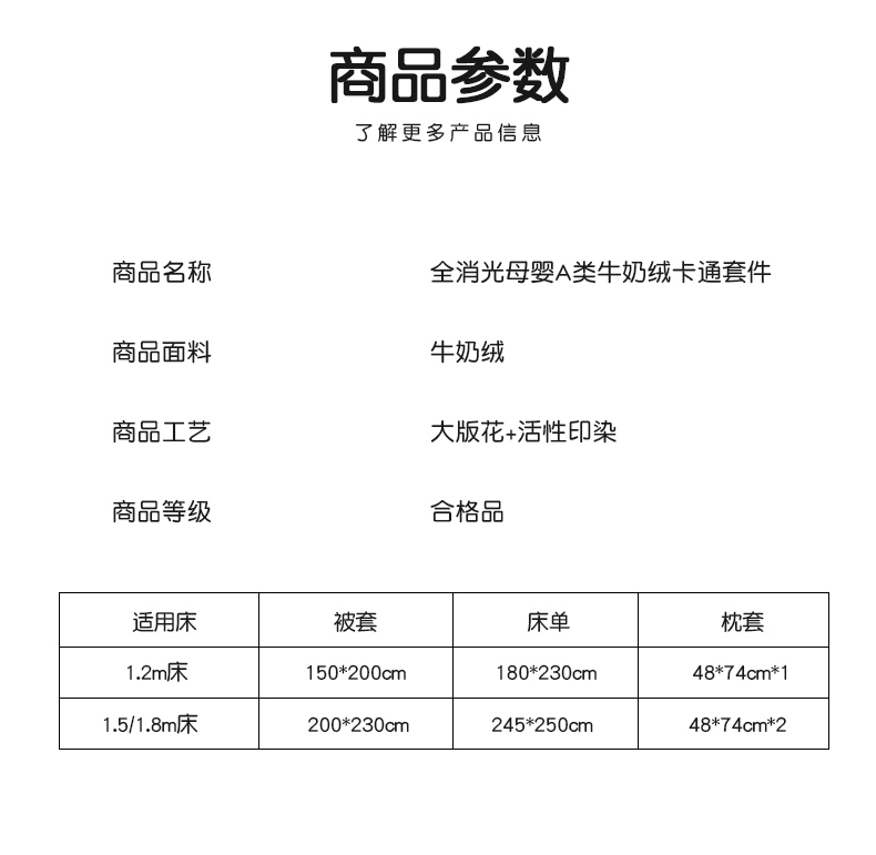 1.8m床单款四件套(被套200*230cm) | ¥150.00 |