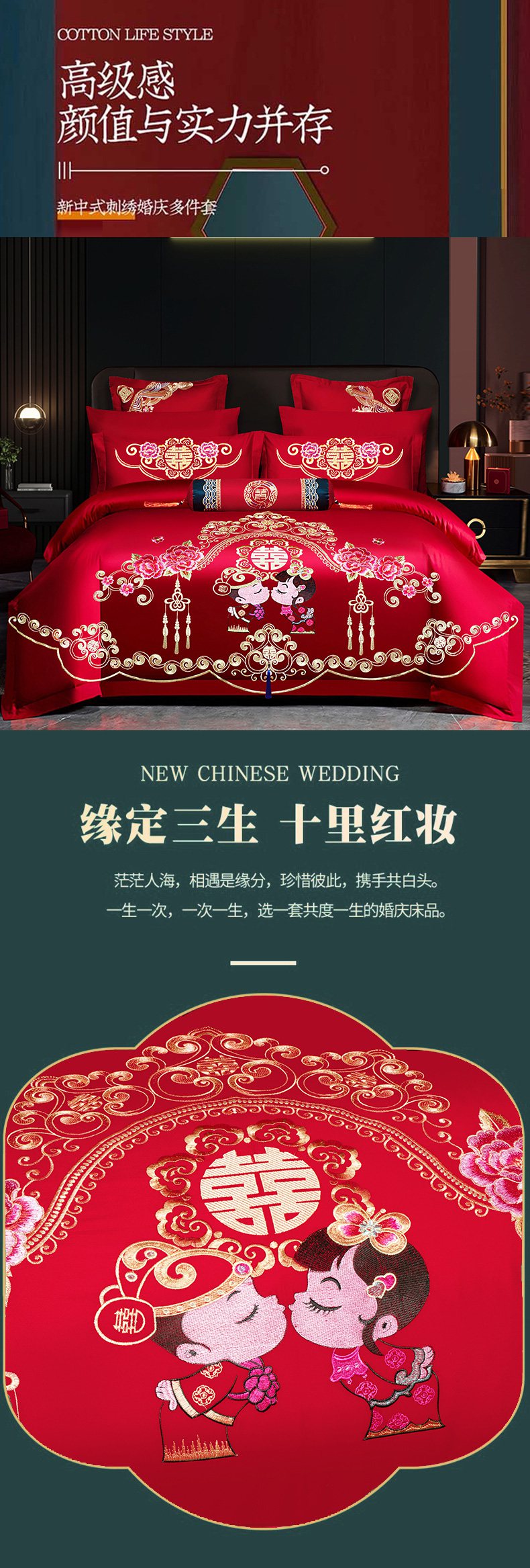 当前位置: 91家纺网 > 商品网购 > 床品套件 > 四件套 > 婚庆四件套 > 梵克保罗 2025秋冬新款全棉绣花婚庆四件套六件套靠垫 棉美满婚姻