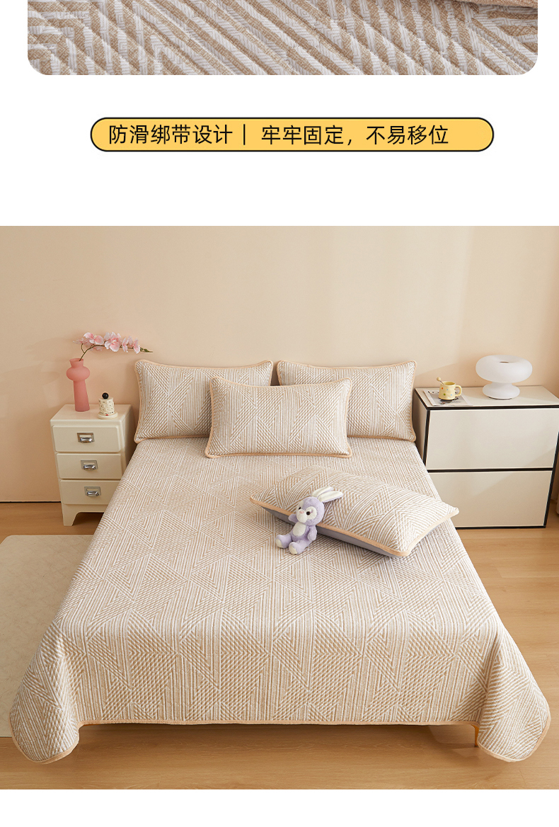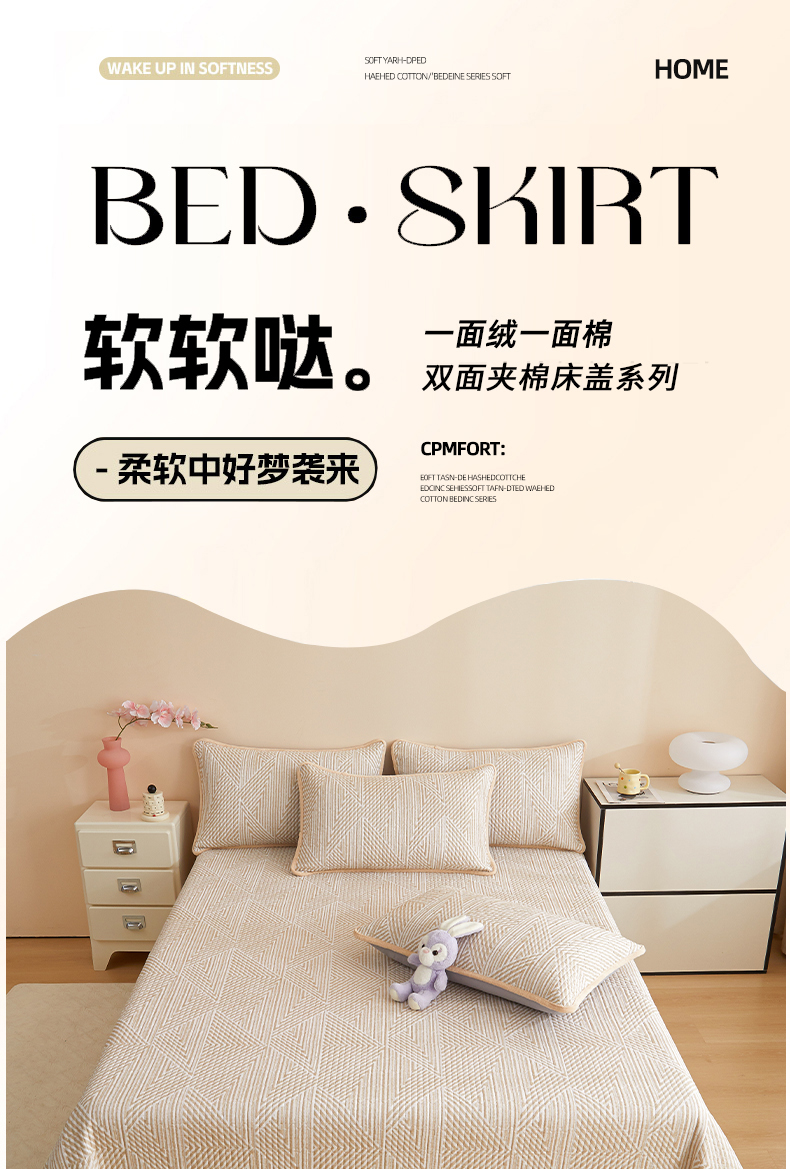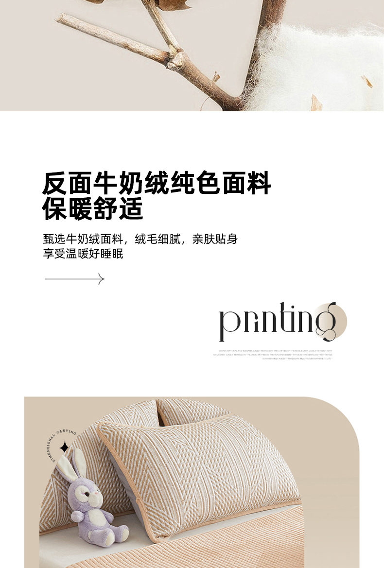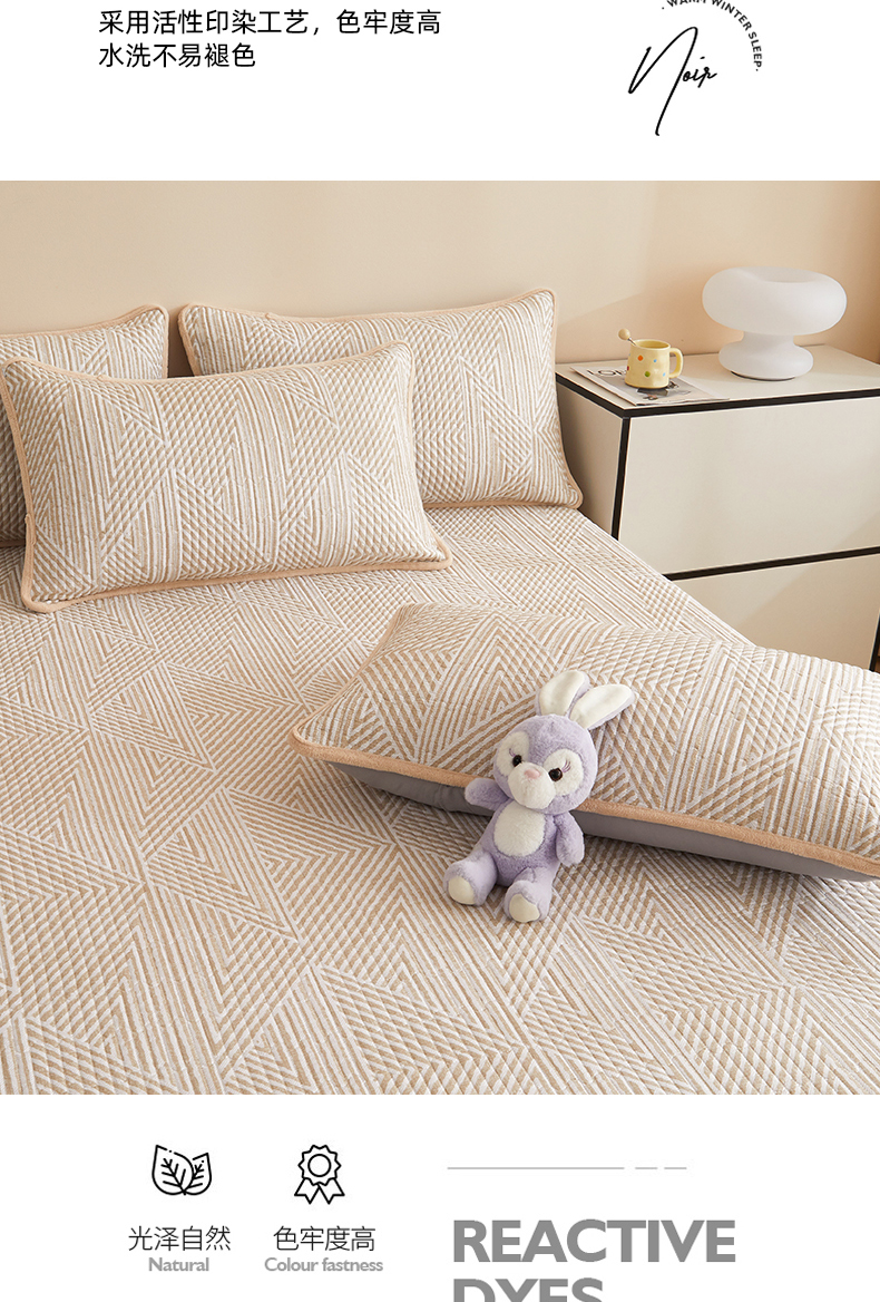 • 91家纺网 家纺一手货源 找家纺 金艾草 2025新款A版全棉印花B版加厚牛奶绒单件棉加绒床盖三件套榻榻米垫 卢卡斯