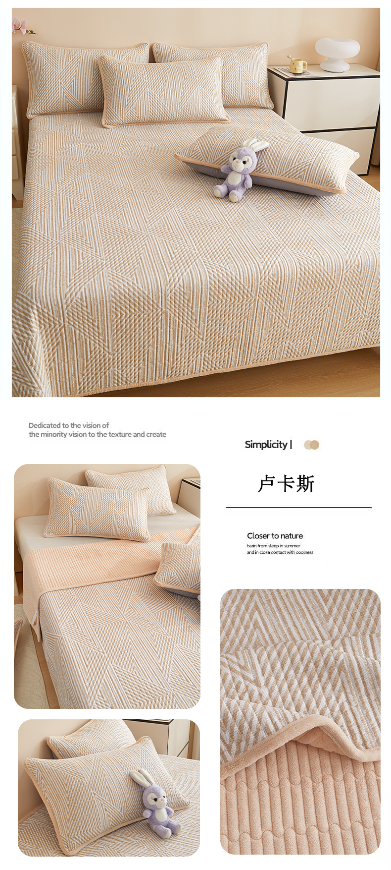 (总)金艾草 2025新款雕花绒兔毛包边牛奶绒床盖款四件套,芳华-薄荷绿,森林秘境-豆沙,芳华-豆沙,森林秘境-浅蓝,芳华-米驼,森林秘境-灰,芳华-浅蓝