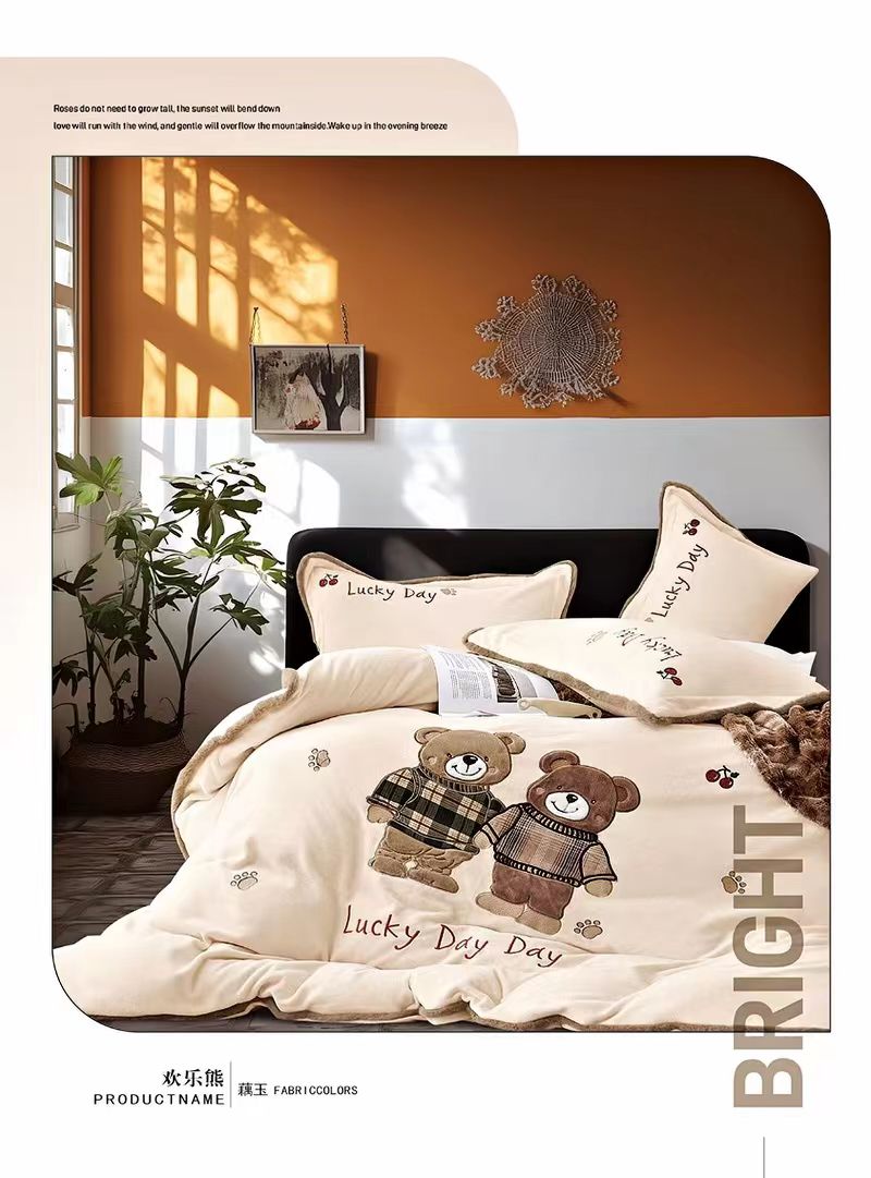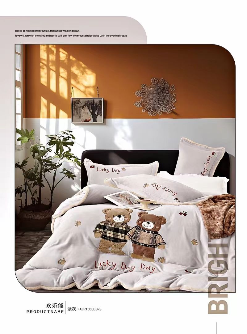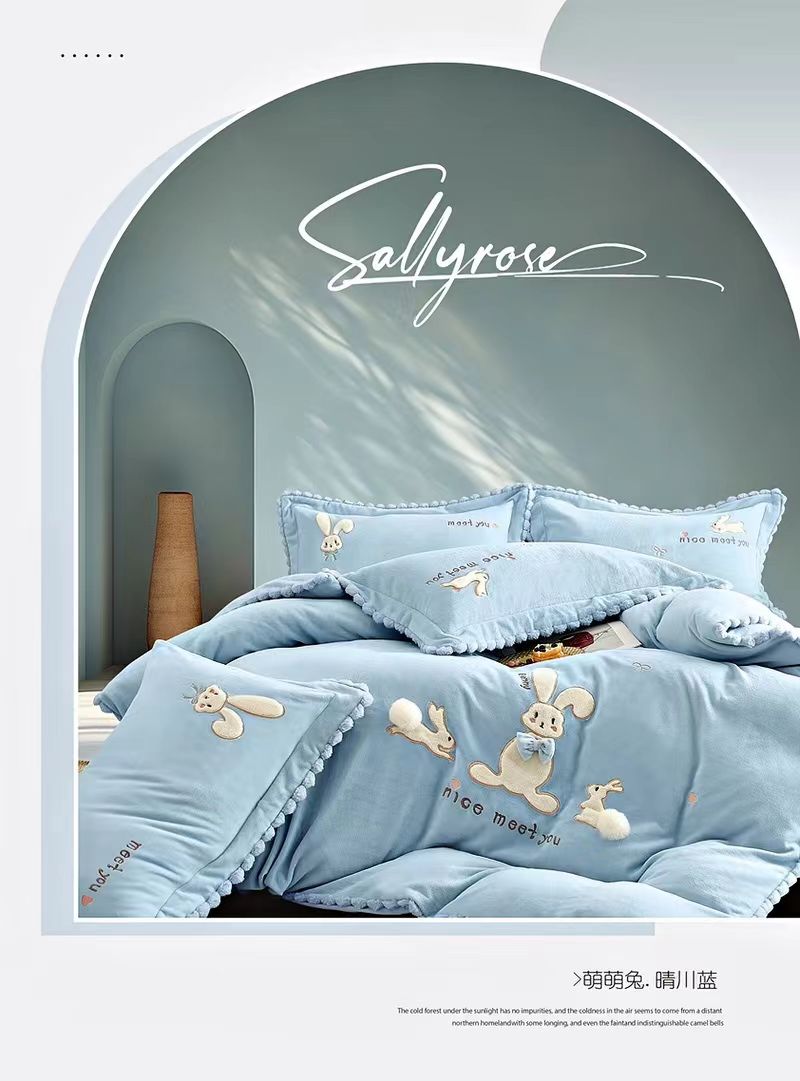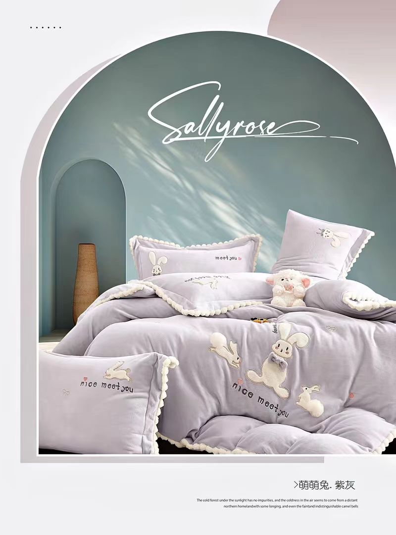 2025高端保暧绒230克儿童萌萌兔手工花贴布绣四件套新品量大优惠