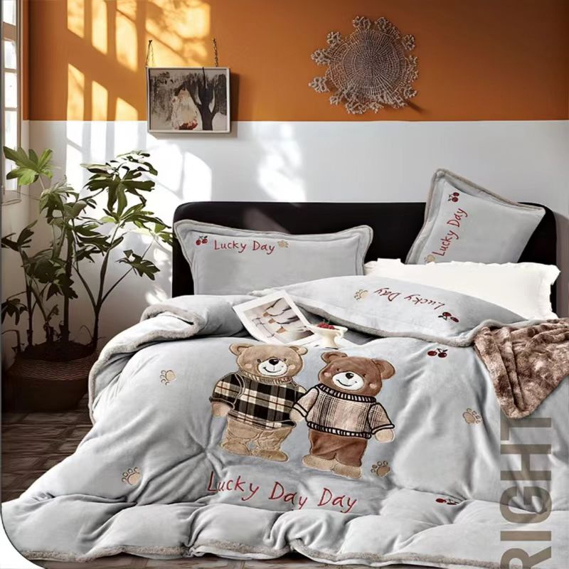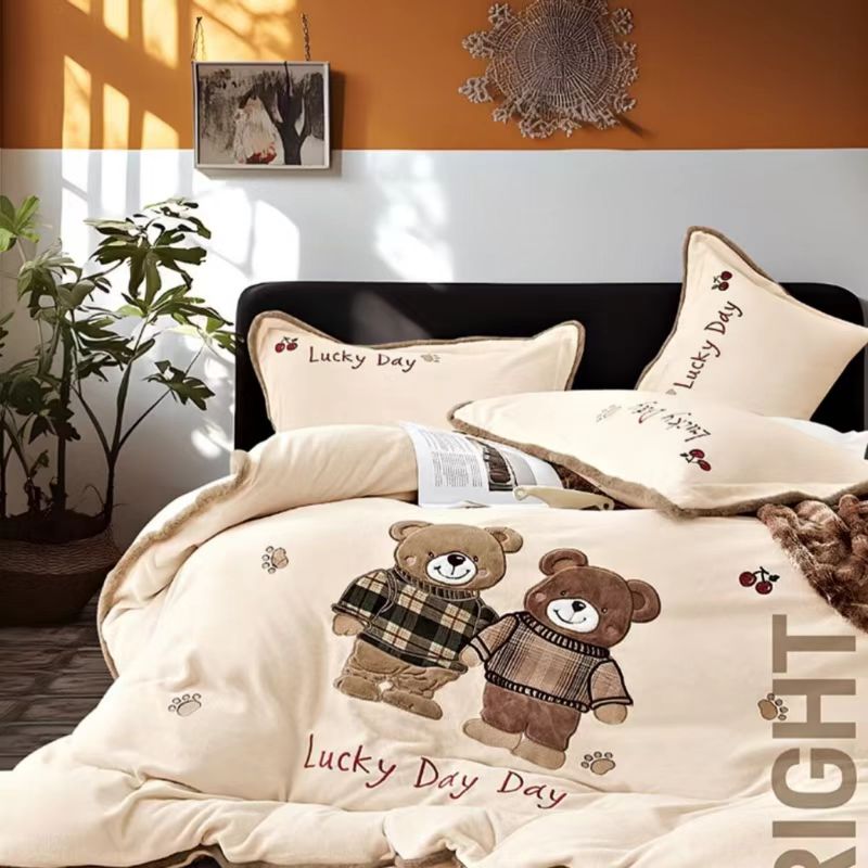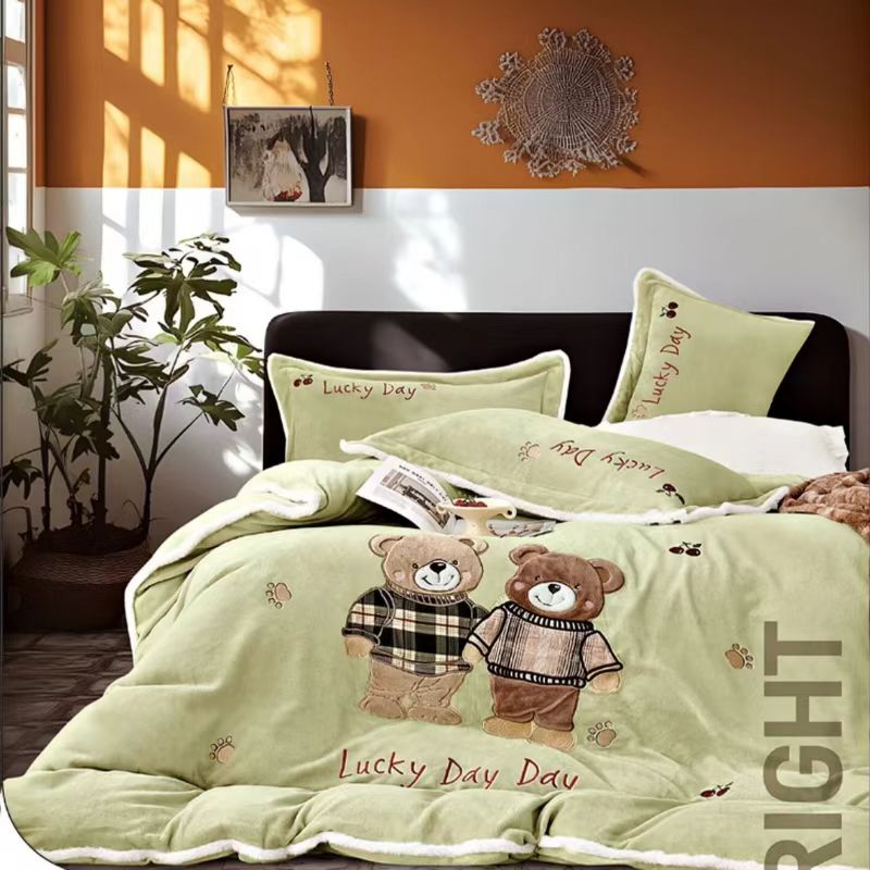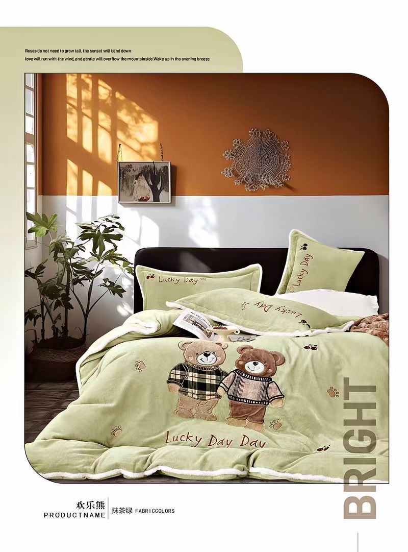 2025高端保暧绒230克儿童萌萌兔手工花贴布绣四件套新品量大优惠