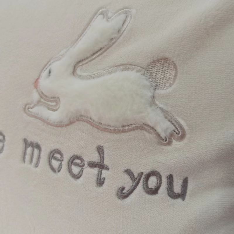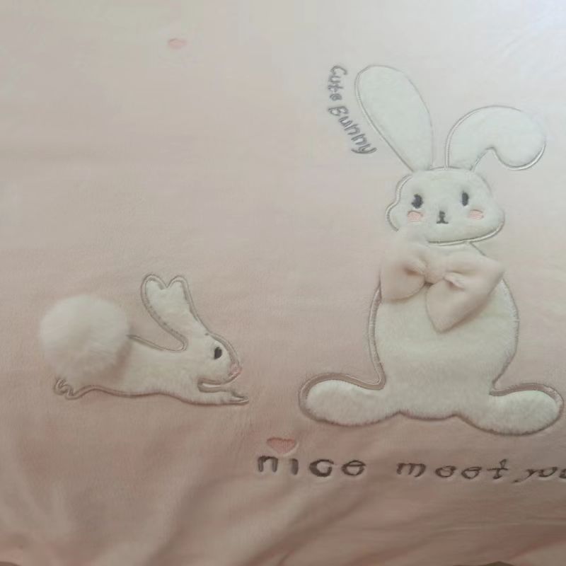 商品名称:2025高端保暧绒230克儿童萌萌兔手工花贴布绣四件套新品量大优惠