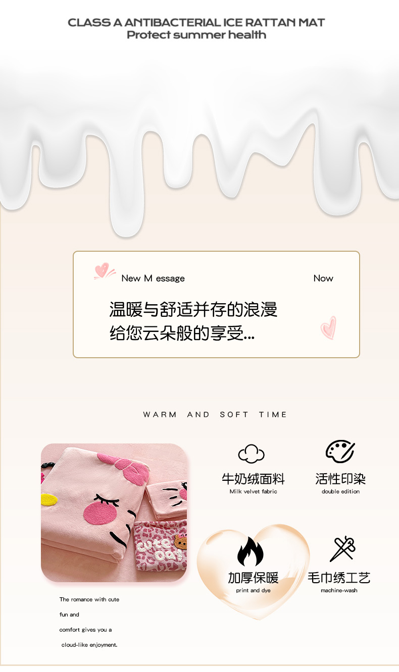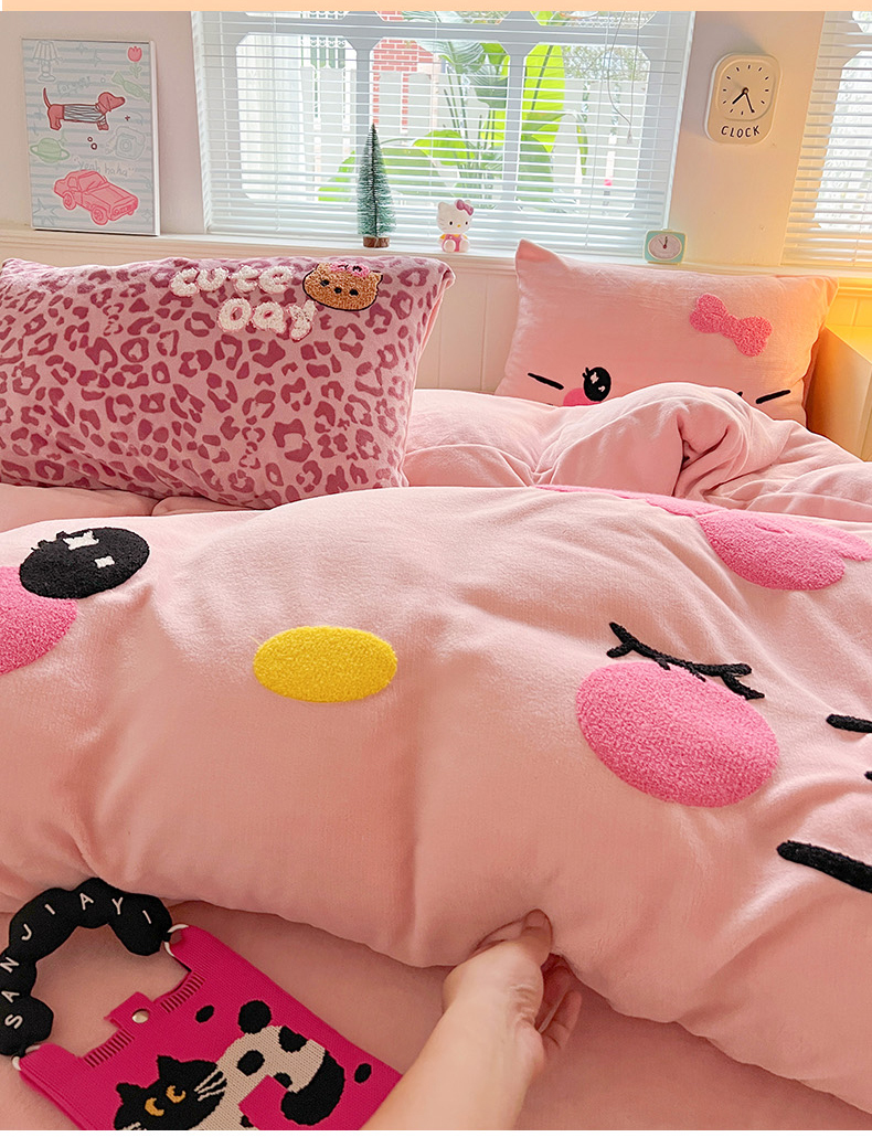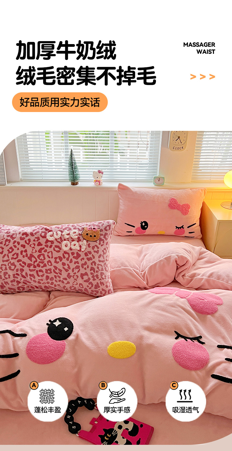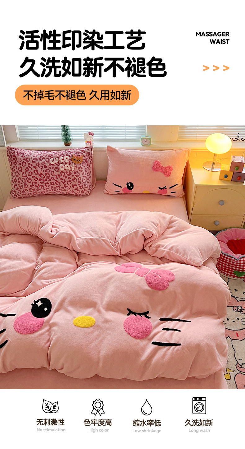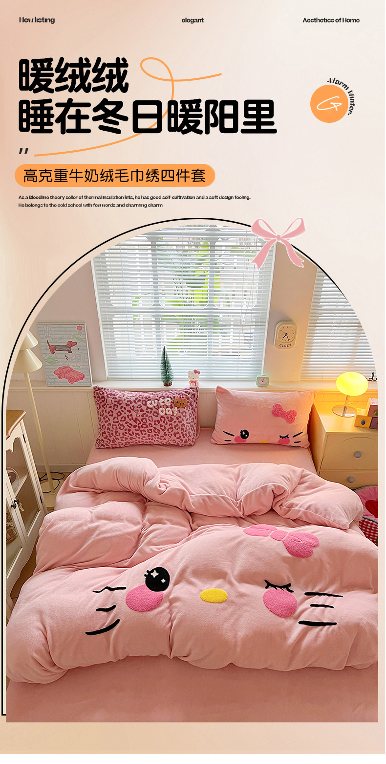 当前位置: 91家纺网 > 商品网购 > 床品套件 > 四件套 > 牛奶绒四件套 > 优选 2025新款高克重200g牛奶绒数码印花毛巾绣卡通四件套直播爆款电商爆款 粉粉表情猫