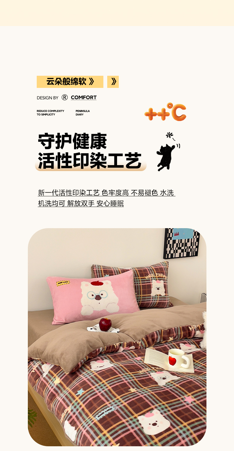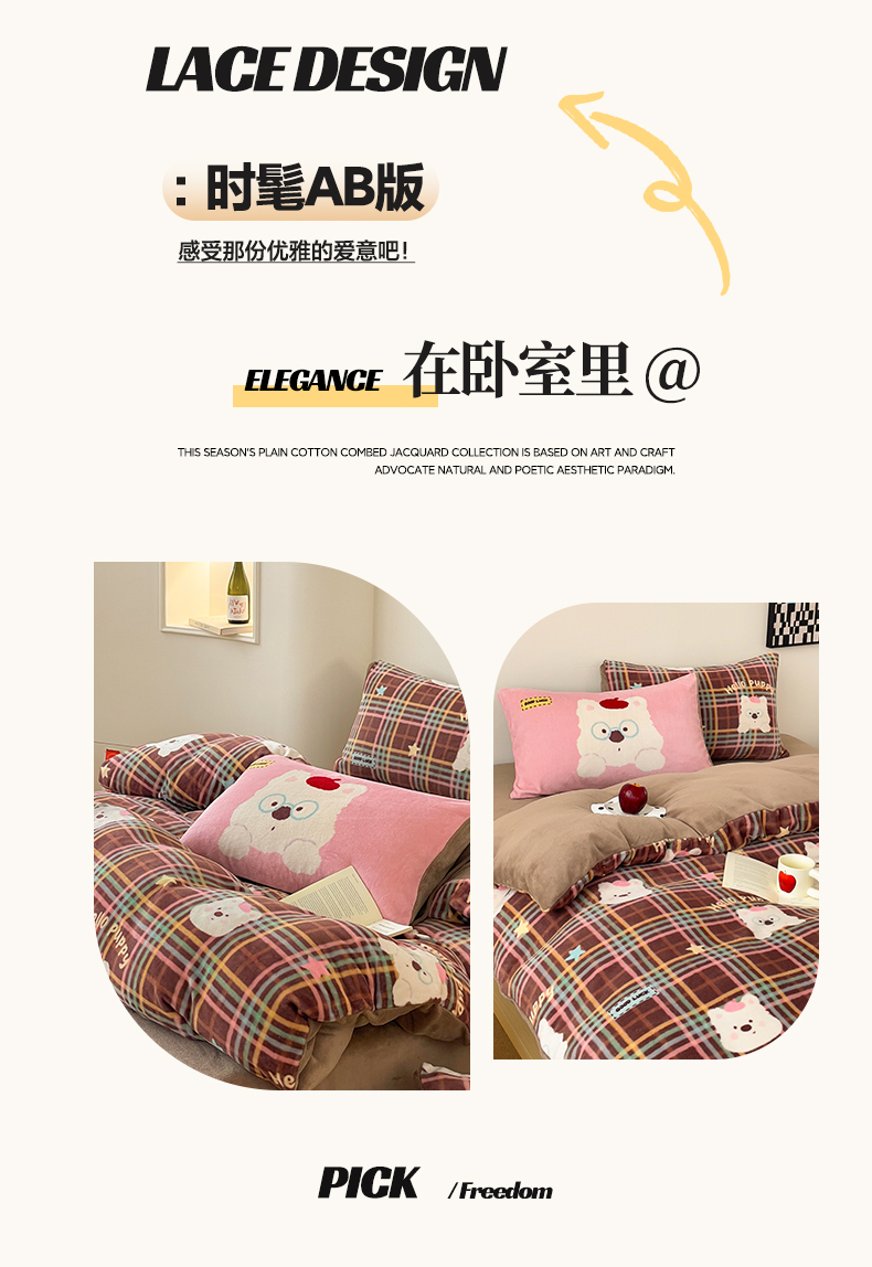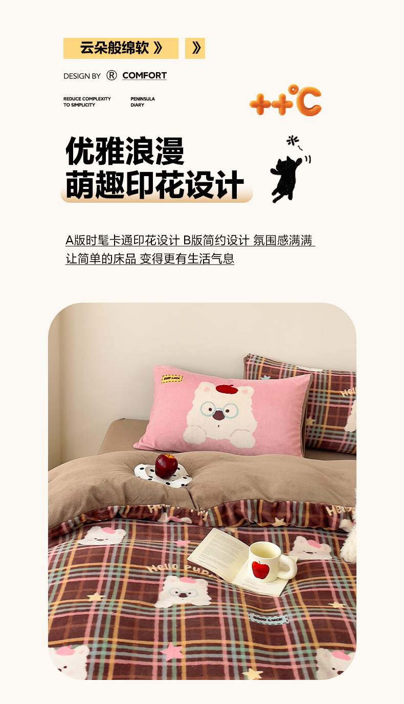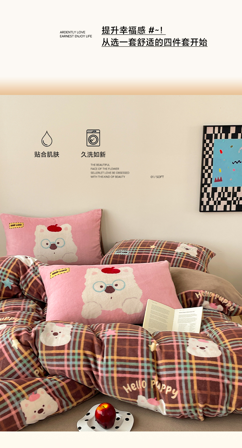 当前位置: 91家纺网 > 商品网购 > 床品套件 > 四件套 > 牛奶绒四件套 > 摩妮卡 2025新款牛奶绒枕套混搭卡通复古四件套 粉帽小狗