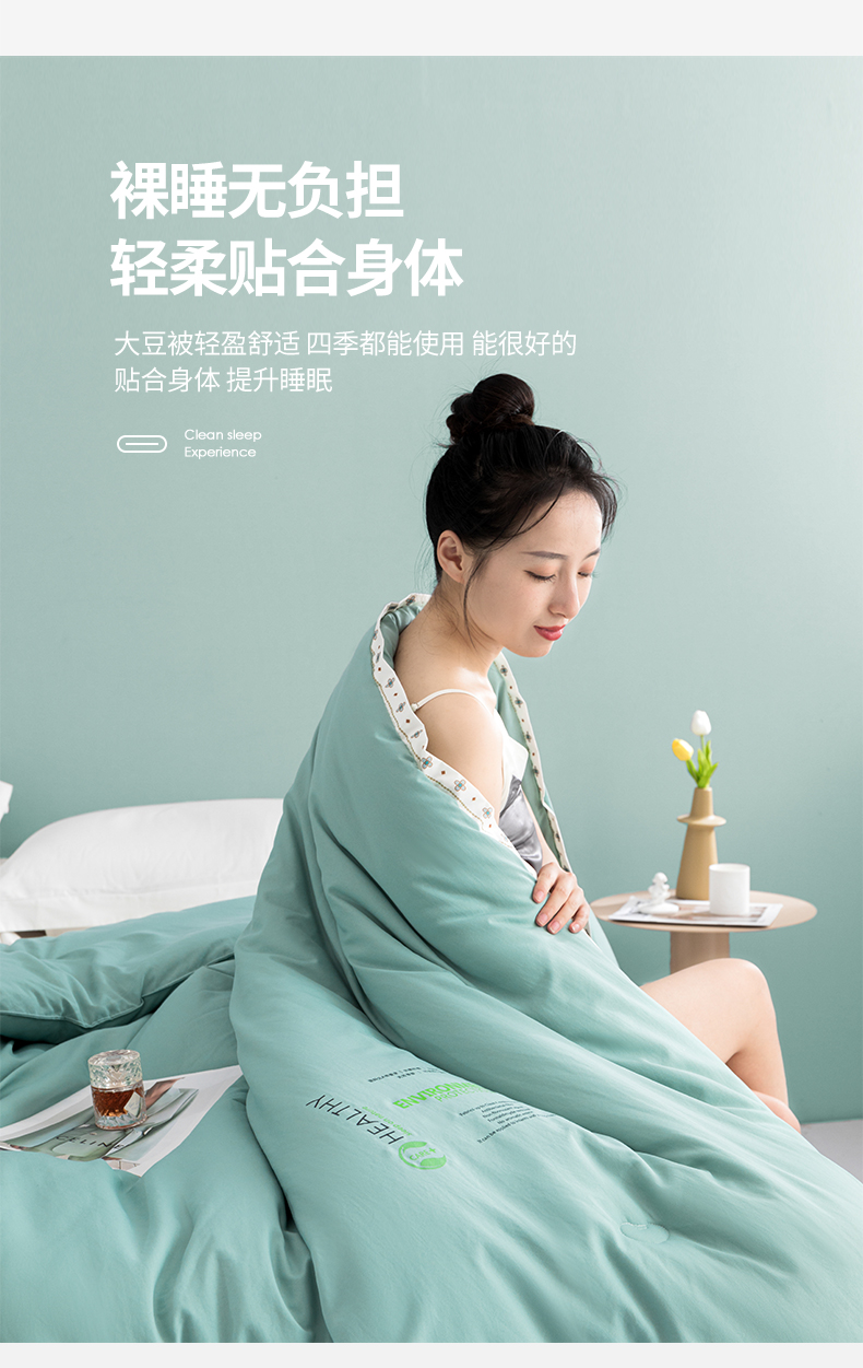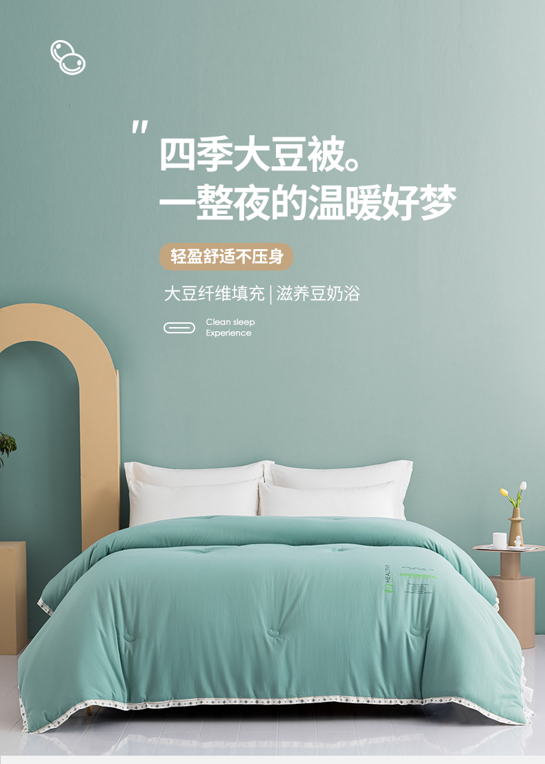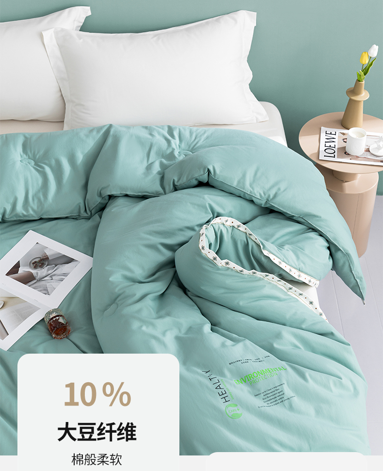 • 91家纺网 家纺一手货源 找家纺 美丽折家纺 2025新款大豆纤维四季被子加厚冬被被芯 豆绿