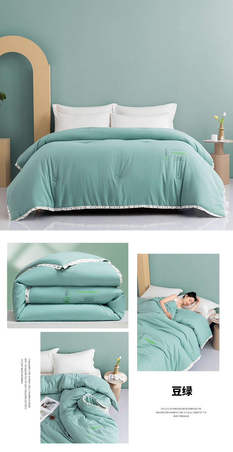 当前位置: 91家纺网 > 商品网购 > 被子 > 冬被 > 美丽折家纺 2025新款大豆纤维四季被子加厚冬被被芯 豆绿
