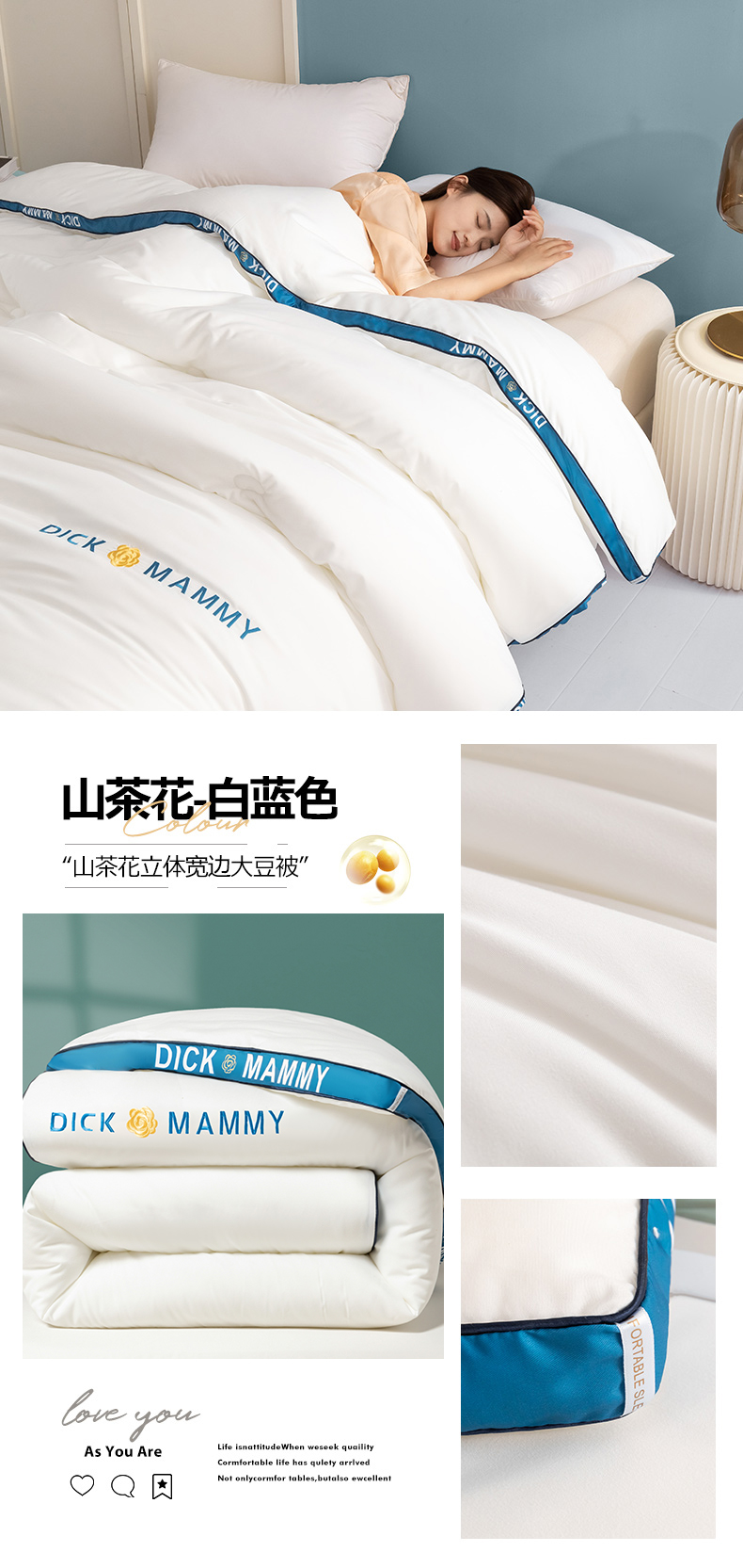 • 91家纺网 家纺一手货源 找家纺 美丽折家纺 2025新款大豆被冬被-山茶花系列一 山茶花-白绿色