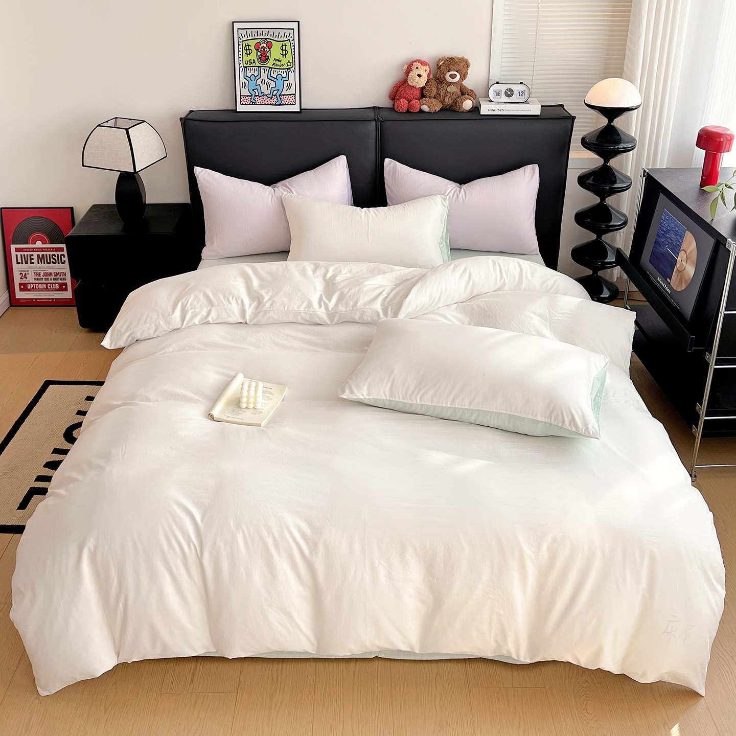 当前位置: 91家纺网 > 商品网购 > 床品套件 > 四件套 > 水洗棉四件套 > 凯洛奇 2025新款ins北欧风水洗棉柔软褶皱纯色被套四件套 拼色-黄绿