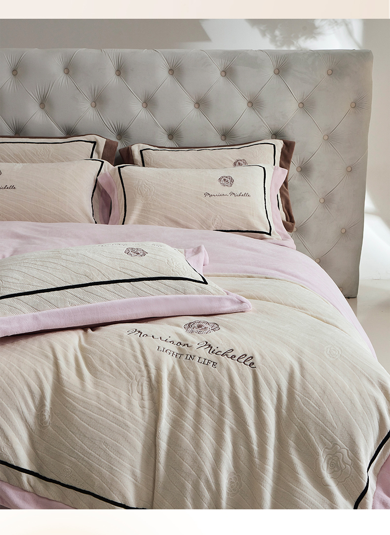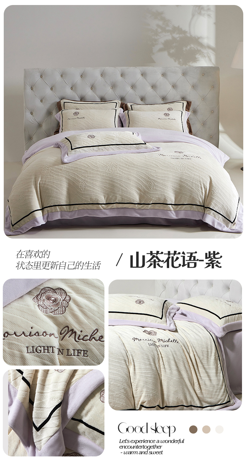 商品名称:(总)优悦生活馆 2025新款雕花绒牛奶绒刺绣四件套-山茶花语