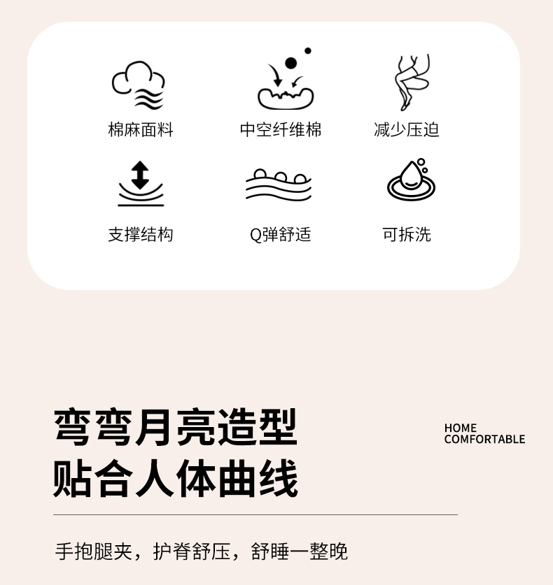 商品名称:(总)蔻眠 多功能棉麻月亮长抱枕夹腿抱枕芯月亮枕头