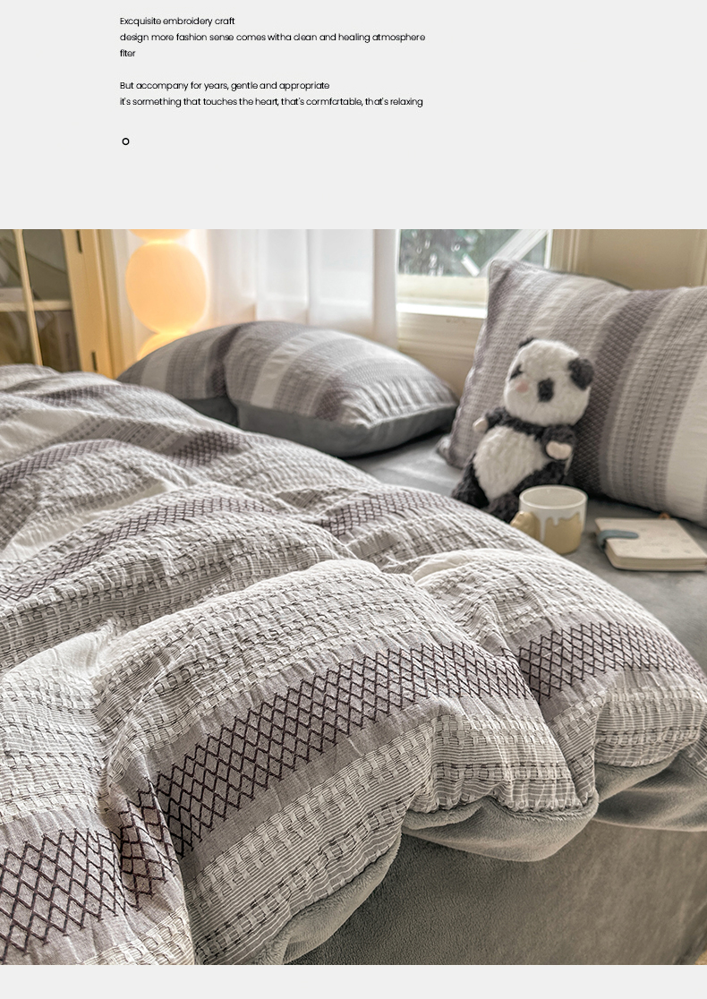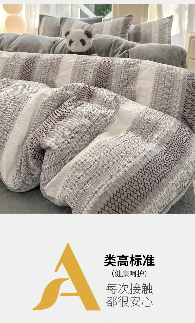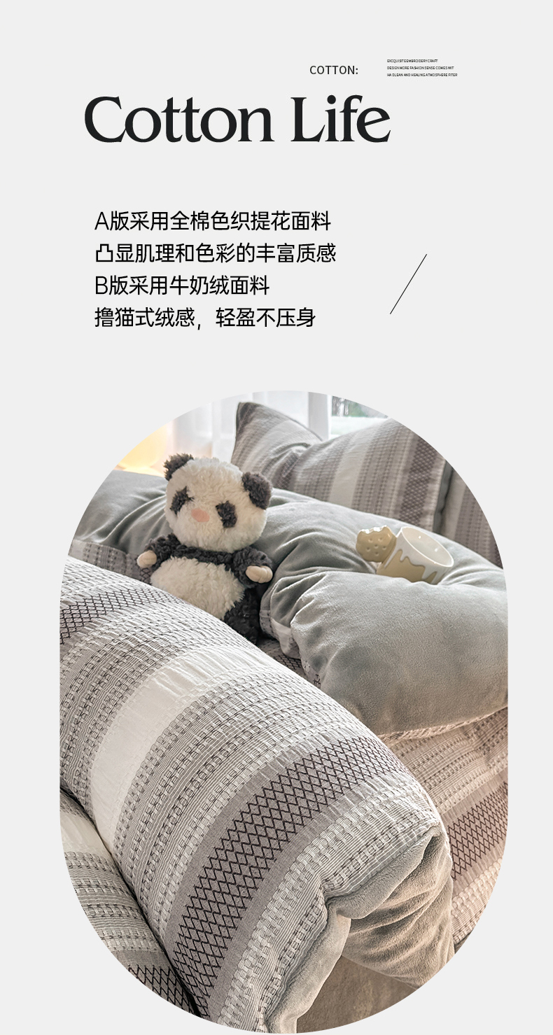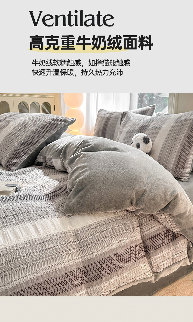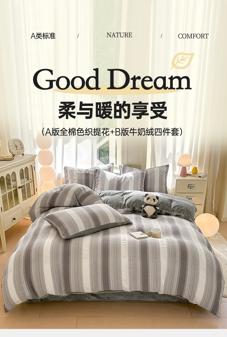 当前位置: 91家纺网 > 商品网购 > 床品套件 > 四件套 > 牛奶绒四件套 > 灰鲸 2025新款A版全棉色织提花B版牛奶绒四件套系列 棉+绒-泛歌灰