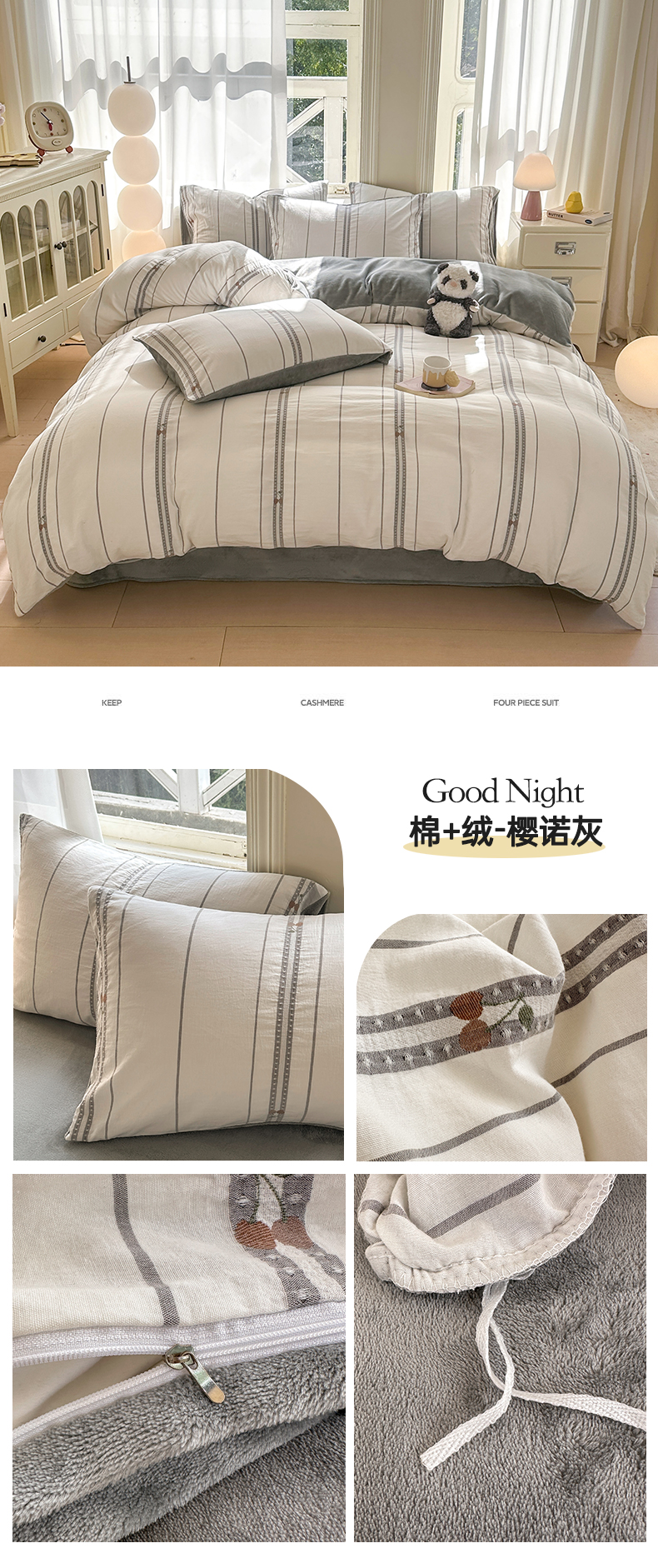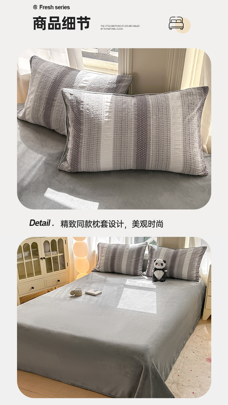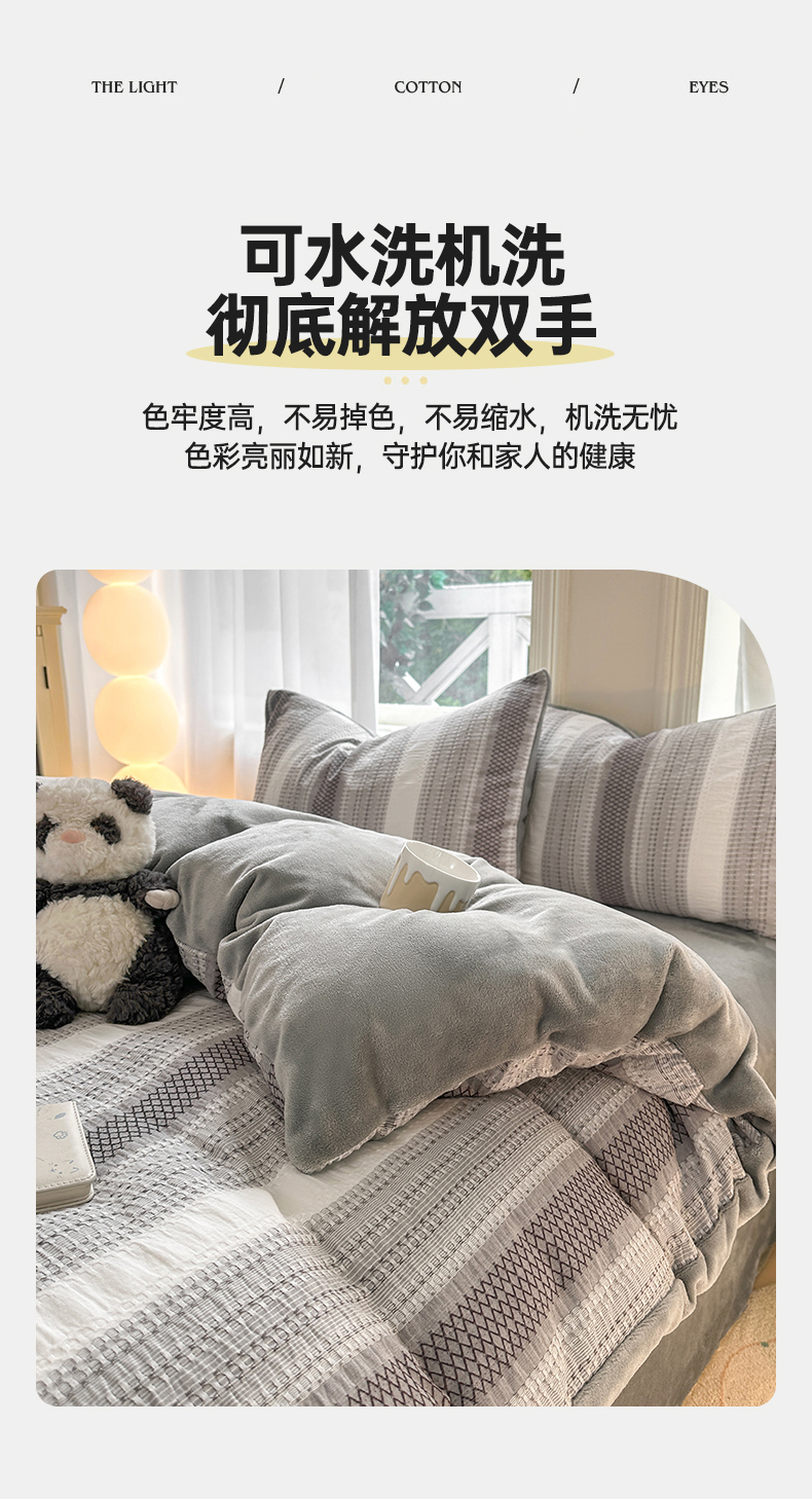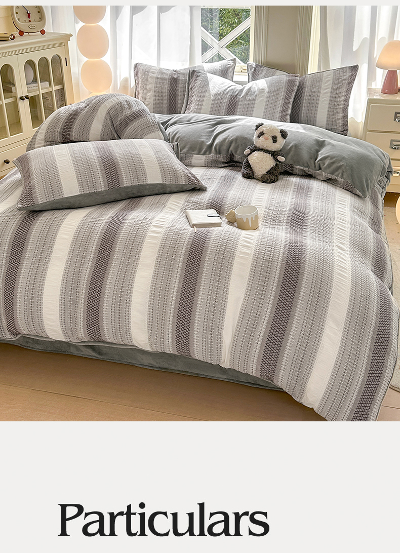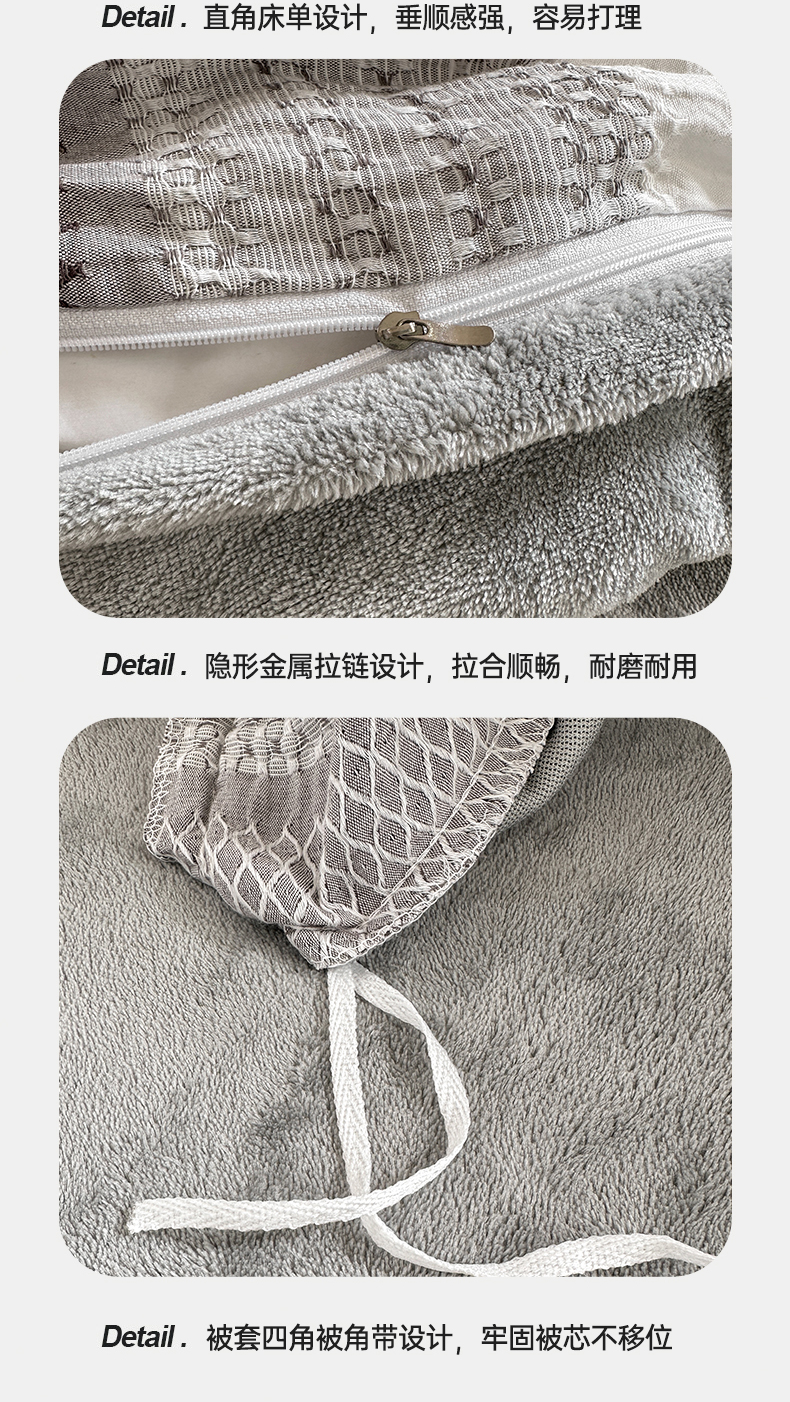 当前位置: 91家纺网 > 商品网购 > 床品套件 > 四件套 > 牛奶绒四件套 > 灰鲸 2025新款A版全棉色织提花B版牛奶绒四件套系列 棉+绒-泛歌灰